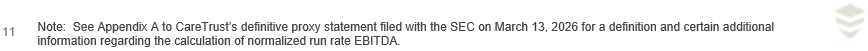 Annualized Normalized Run Rate EBITDA attributable to CareTrust REIT, Inc.(3)