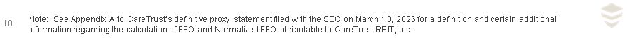 Net Debt to Annualized Normalized Run Rate EBITDA attributable to CareTrust REIT, Inc. compares net debt as of the last day of the quarter to the Annualized Normalized Run Rate EBITDA attributable to