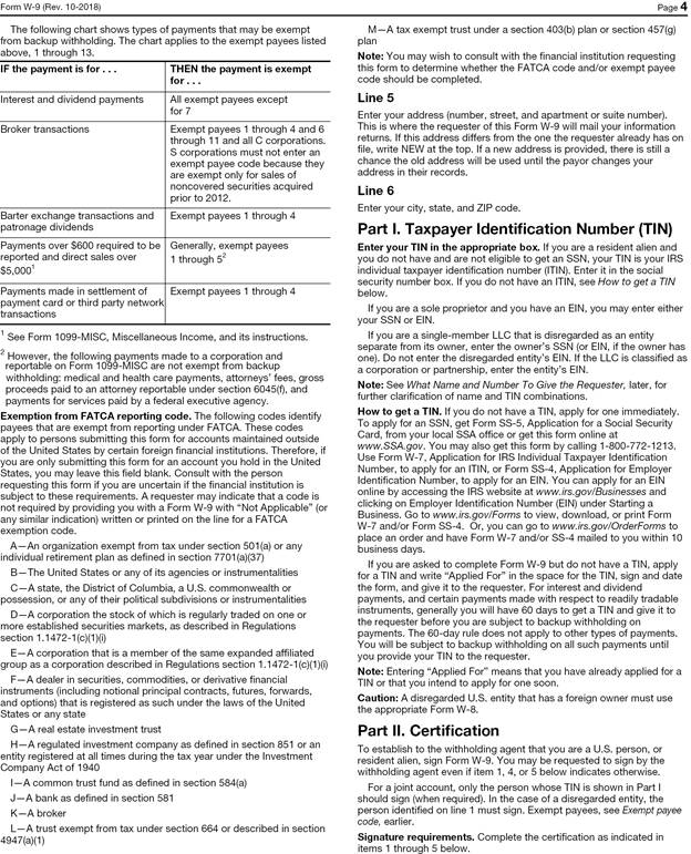 9. IRS Form W-9, IRS Form W-8. Each holder who is a Holder (as defined in Section 13 of the Offer to Purchase) surrendering certificates for payment is required to provide the Depositary with a correct Taxpayer Identification Number (“TIN”) on IRS Form W-9 (provided herein) and certify under penalties of perjury that such number is correct and indicate whether such holder is subject to backup withholding as provided in the certification instructions in the form. Each holder must date and sign the IRS Form W-9 in the spaces indicated. Failure to provide the information on the form may subject the holder to federal income tax withholding on the Offer Price and to a penalty imposed by the Internal Revenue Service. If the holder has not been issued a TIN and has applied for a number, the holder should write “Applied For” in the space for the TIN and sign and date the IRS Form W-9 in the spaces indicated. If the IRS Form W-9 is so completed, the Depositary will withhold 24% of all reportable payments that the holder is otherwise entitled to receive until a TIN is provided to the Depositary. If the holder provides a properly certified TIN within 60 days, the Depositary will refund the withheld taxes upon the holder’s request. Each holder who is not a U.S. Holder (as defined in Section 13 of the Offer to Purchase) must complete and submit the applicable IRS Form W-8 in order to be exempt from the federal income tax backup withholding due on payments with respect to the Company Shares. The appropriate IRS Form W-8 may be obtained from the Information Agent and the Depositary. Shareholders that are not U.S. Holders are urged to consult their tax advisor regarding the appropriate IRS Form W-8 in their particular circumstances.