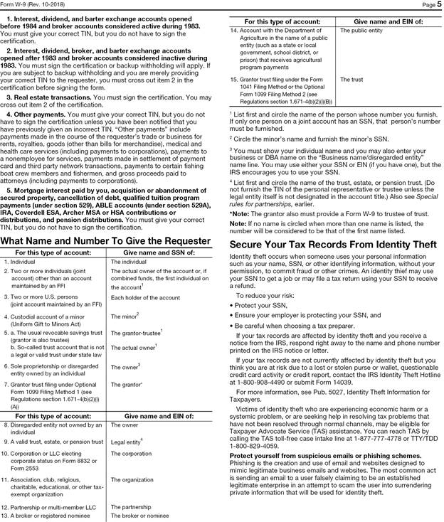 | Tax Identification or Social Security Number) (See IRS Form W-9 below and Form W-8) |