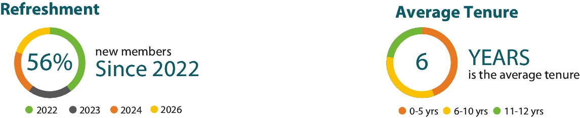 Continuous Board Refreshment | The average tenure of our directors is 6 years. Since 2022, the Board has appointed five new directors, representing refreshment of 56% of the current nine-member Board in that time. Scott M. Sutton is the Board’s most recent addition, having been appointed in January 2026. | ||||
