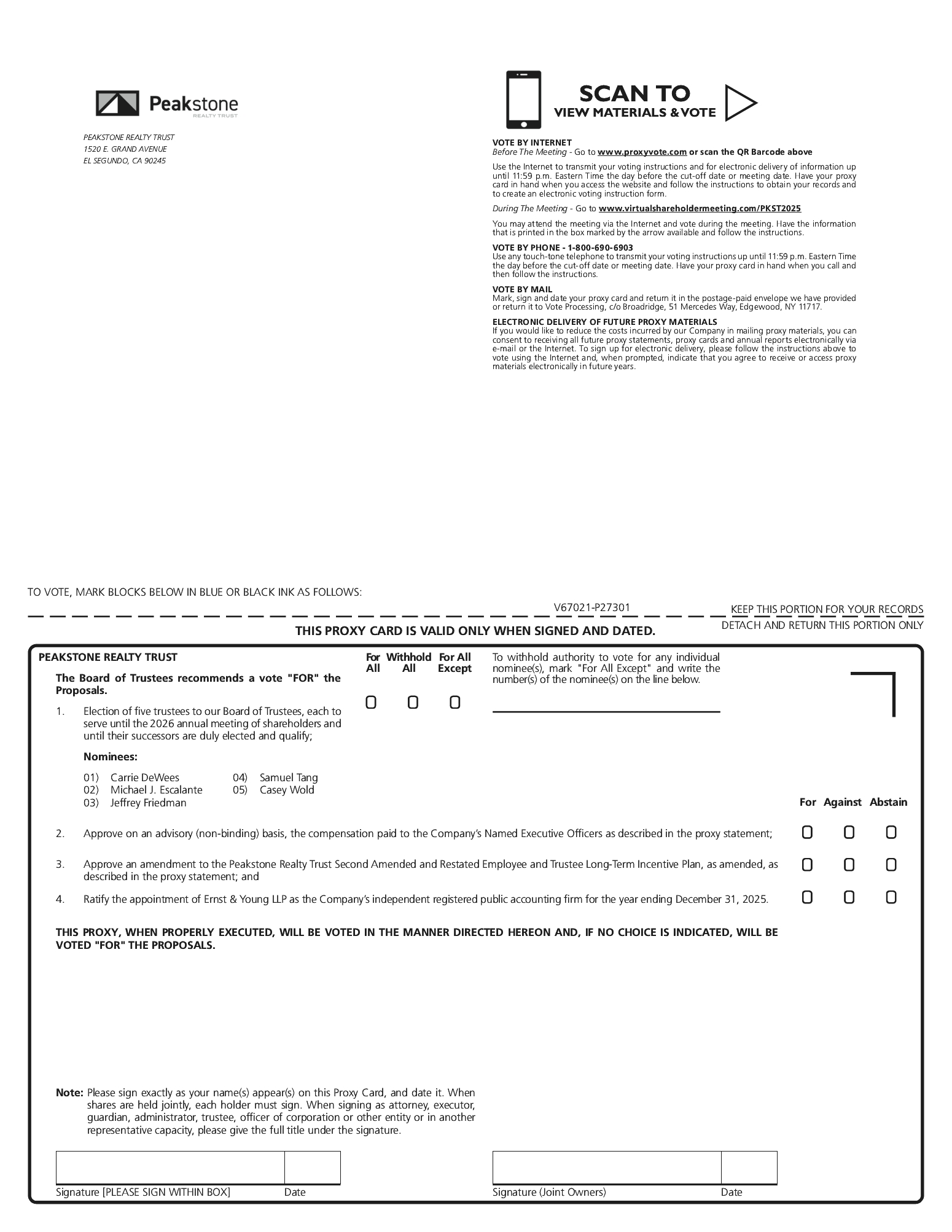 “LTIP Units” means units of partnership interest designated as LTIP Units, including one or more classes of profit interests, in PKST OP, L.P. Awards of LTIP Units are intended to qualify as “profits interests” within the meaning of IRS Revenue Procedure 93-27, as clarified by IRS Revenue Procedure 2001-43, with respect to a Participant in the Plan who is rendering services to or for the benefit of the Company, including its Subsidiaries.