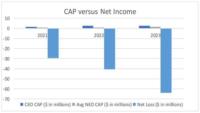 The Company believes that the use of equity awards serves to align our NEOs’ outstanding and unvested awards with shareholders’ interests in the long term. However, the CAP for our NEOs may not be correlated with the Company’s TSR or net income (loss) for any given year, including the years set forth in the table, as our core business strategies are implemented over a period of years, and the market price of our common stock is affected by many factors and may not reflect the achievement of milestones under our performance-based incentive pay program.