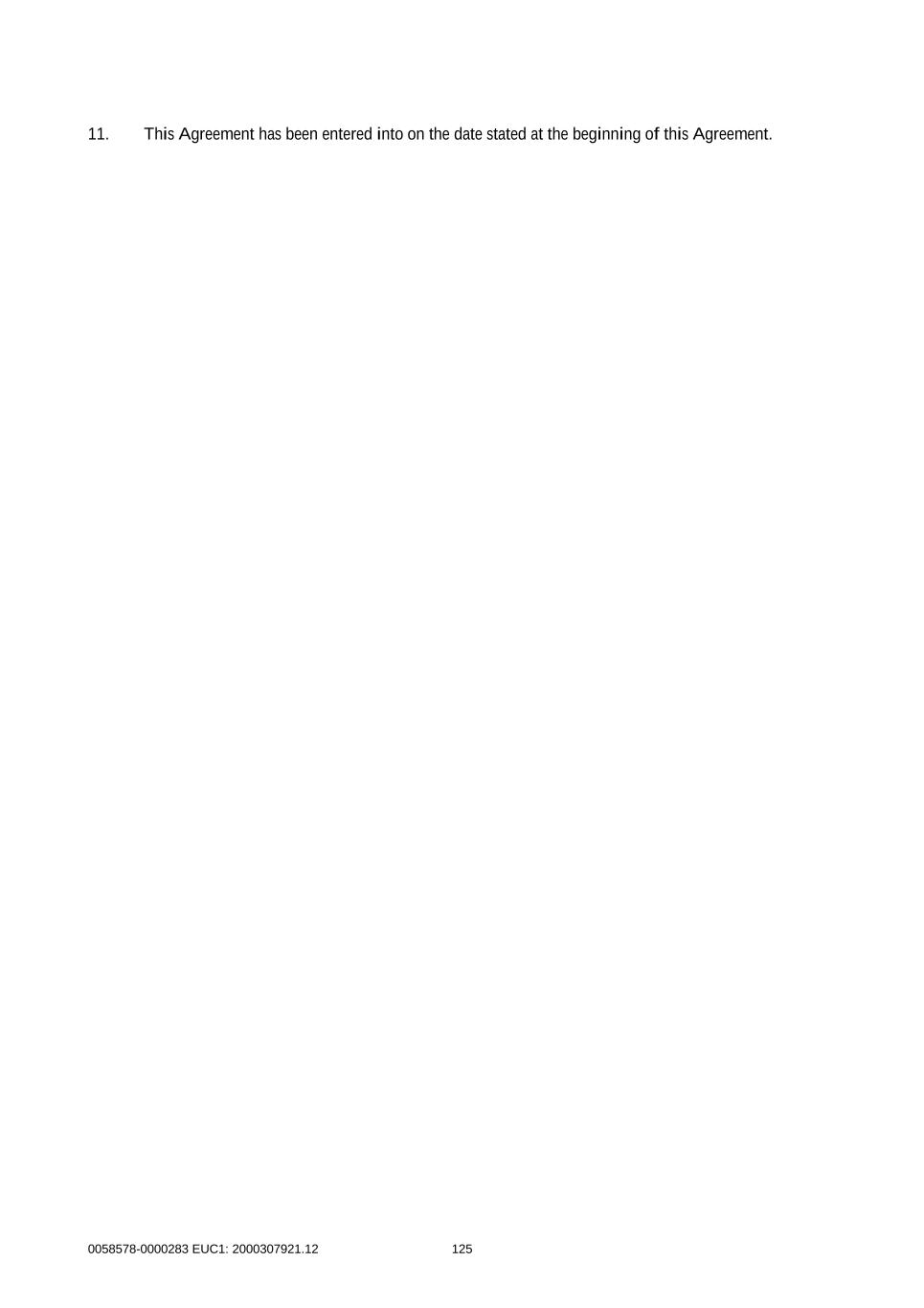 0058578-0000283 EUC1: 2000307921.12 125 11. This Agreement has been entered into on the date stated at the beginning of this Agreement.