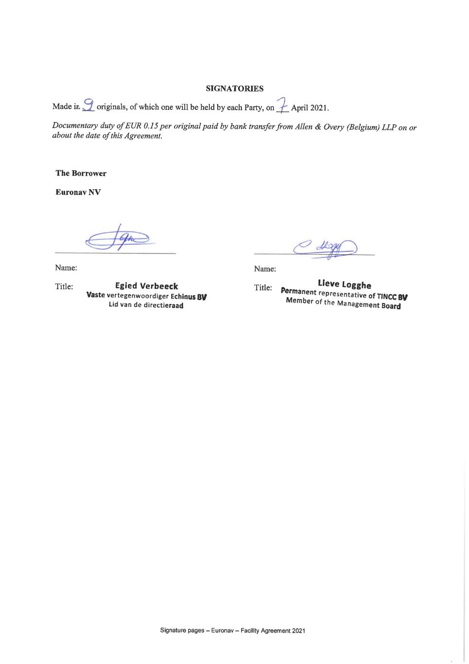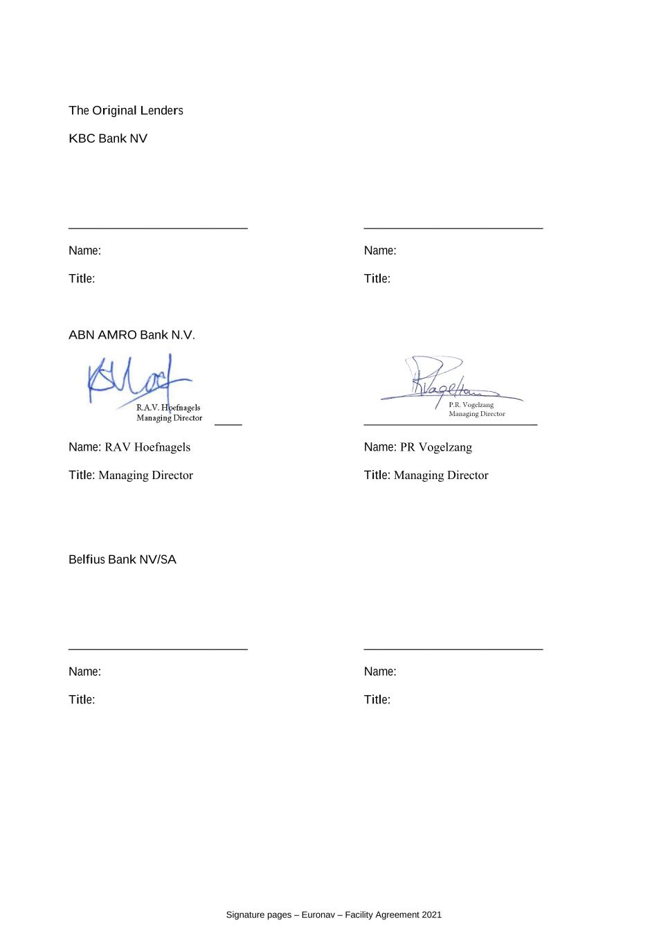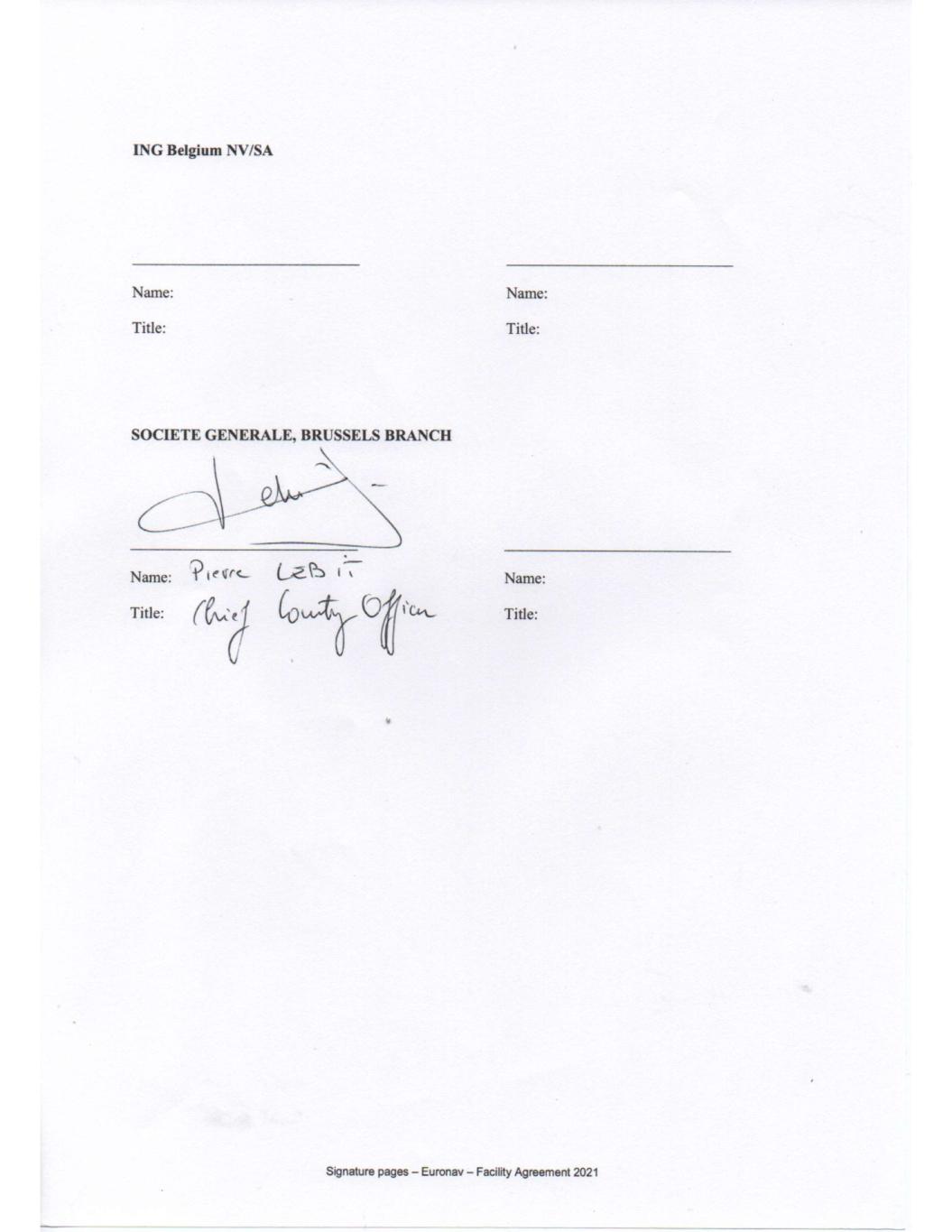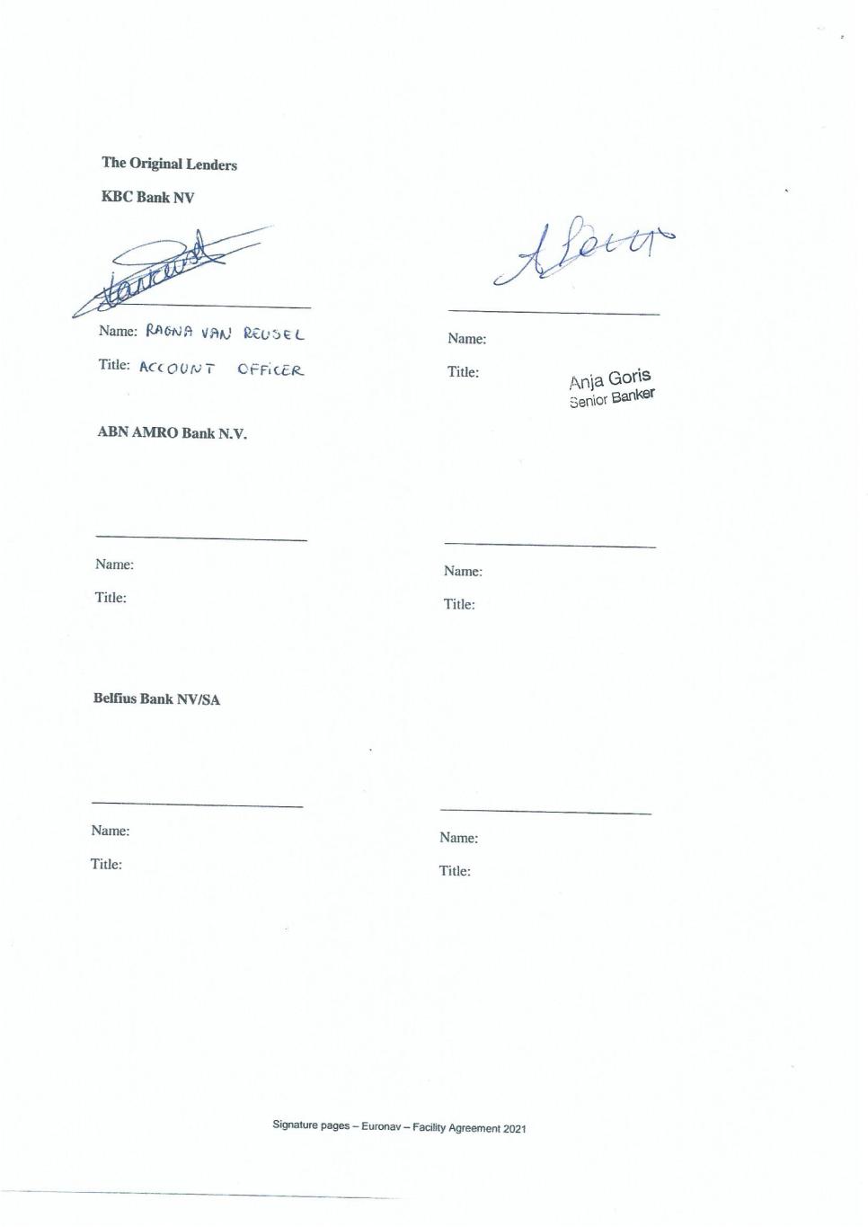 Signature pages – Euronav – Facility Agreement 2021 _____________________________ Name: Title: ____________________________ Name: PR Vogelzang Title: Managing Director _____________________________ Name: The Original Lenders KBC Bank NV _____________________________ Name: Title: ABN AMRO Bank N.V. ____________________________ Name: RAV Hoefnagels Title: Managing Director Belfius Bank NV/SA _____________________________ Name: Title: Title:
