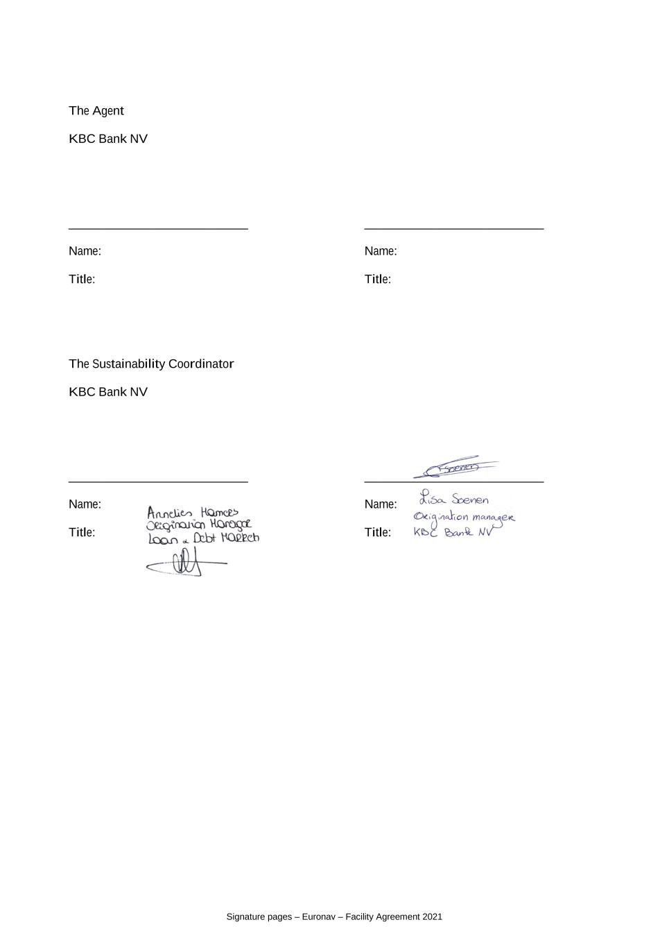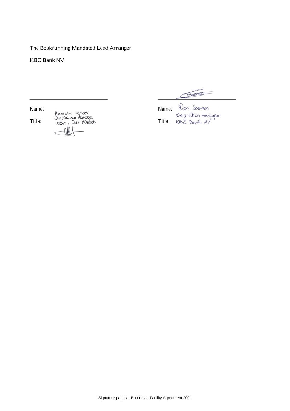Signature pages – Euronav – Facility Agreement 2021 The Bookrunning Mandated Lead Arranger KBC Bank NV _____________________________ _____________________________ Name: Name: Title: Title: