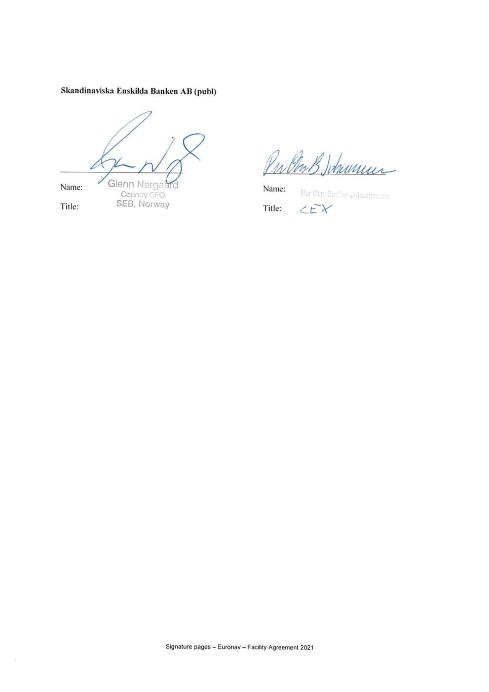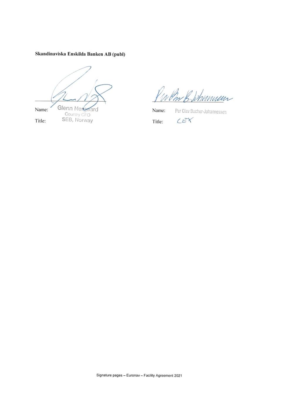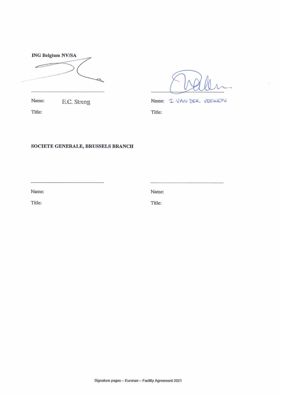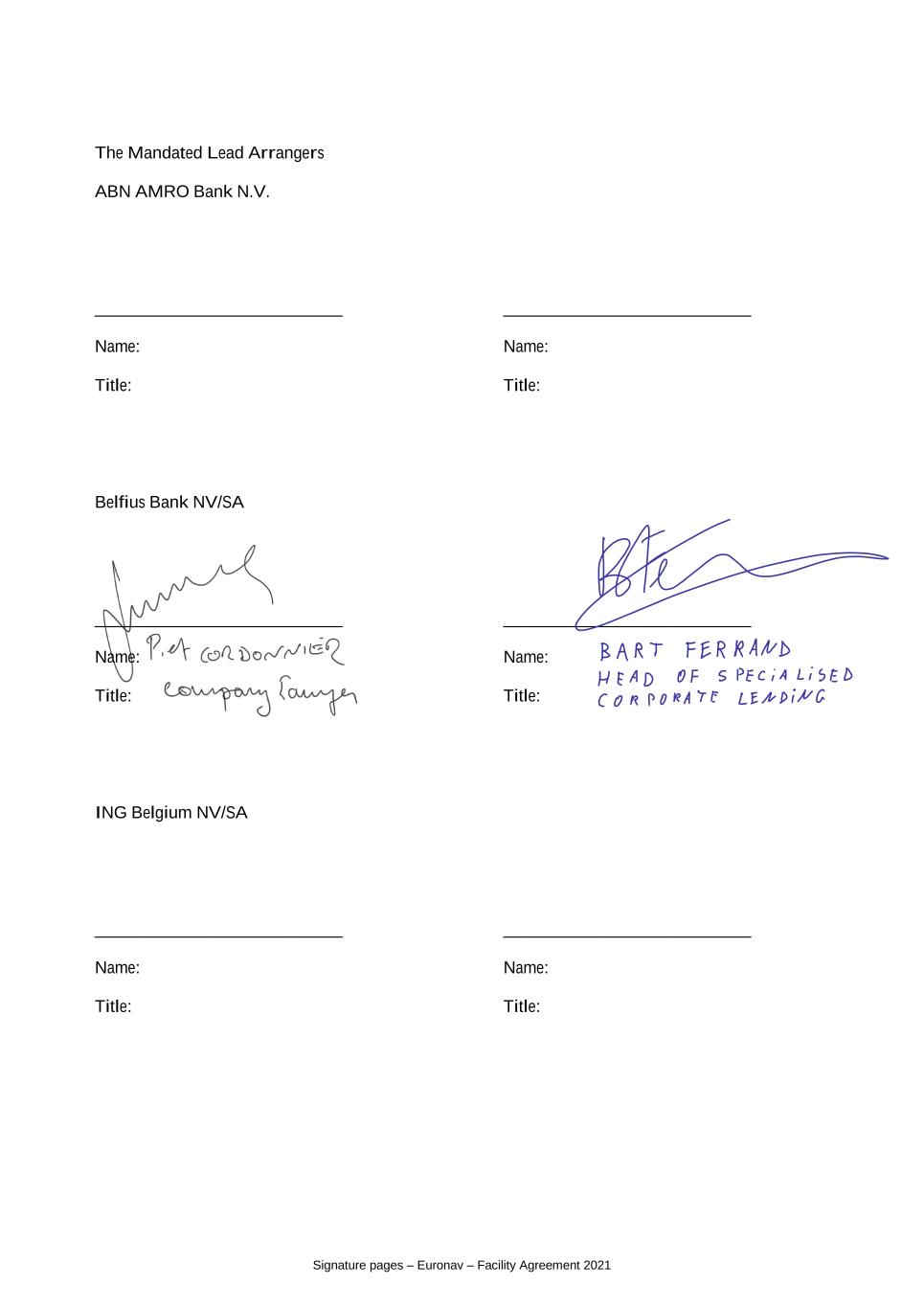 Signature pages – Euronav – Facility Agreement 2021 The Mandated Lead Arrangers ABN AMRO Bank N.V. ____________________________ Name: RAV Hoefnagels Title: Managing Director ____________________________ Name: PR Vogelzang Title: Managing Director Belfius Bank NV/SA _____________________________ _____________________________ Name: Name: Title: Title: ING Belgium NV/SA _____________________________ _____________________________ Name: Name: Title: Title: