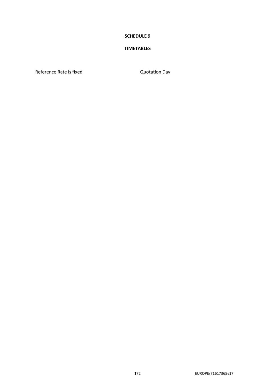 172 EUROPE/71617365v17 SCHEDULE 9 TIMETABLES Reference Rate is fixed Quotation Day