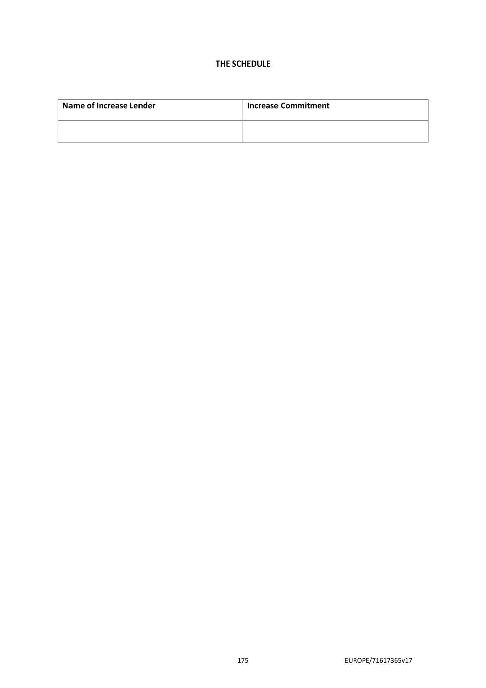 175 EUROPE/71617365v17 THE SCHEDULE Name of Increase Lender Increase Commitment