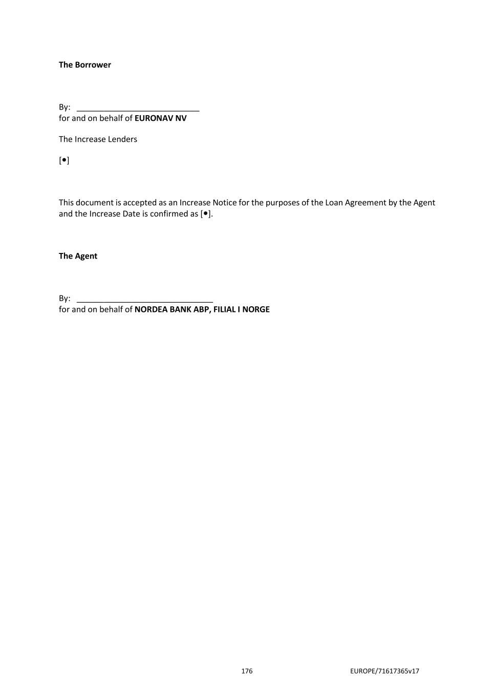 176 EUROPE/71617365v17 The Borrower By: ___________________________ for and on behalf of EURONAV NV The Increase Lenders [] This document is accepted as an Increase Notice for the purposes of the Loan Agreement by the Agent and the Increase Date is confirmed as []. The Agent By: ______________________________ for and on behalf of NORDEA BANK ABP, FILIAL I NORGE