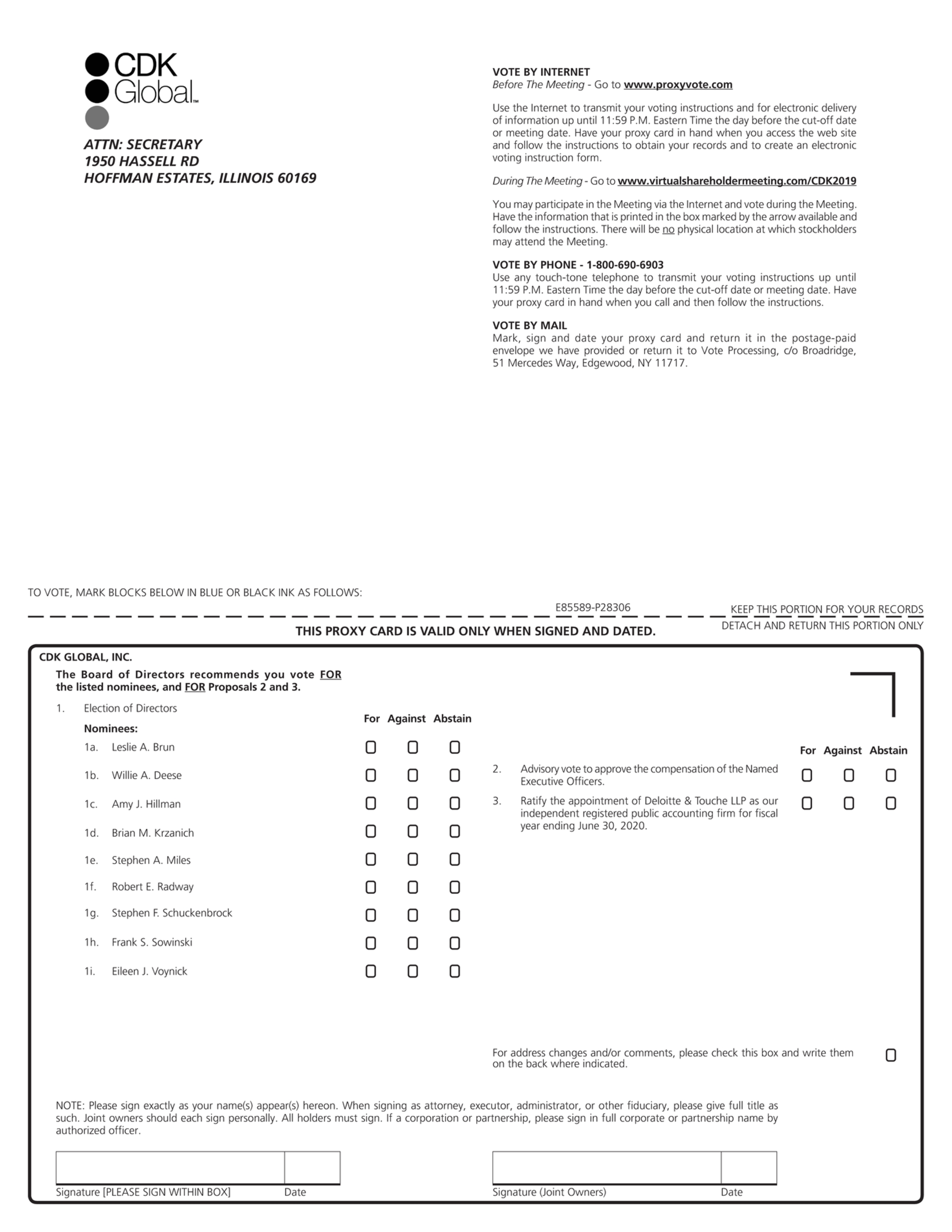 www.virtualshareholdermeeting.com/ CDK2019