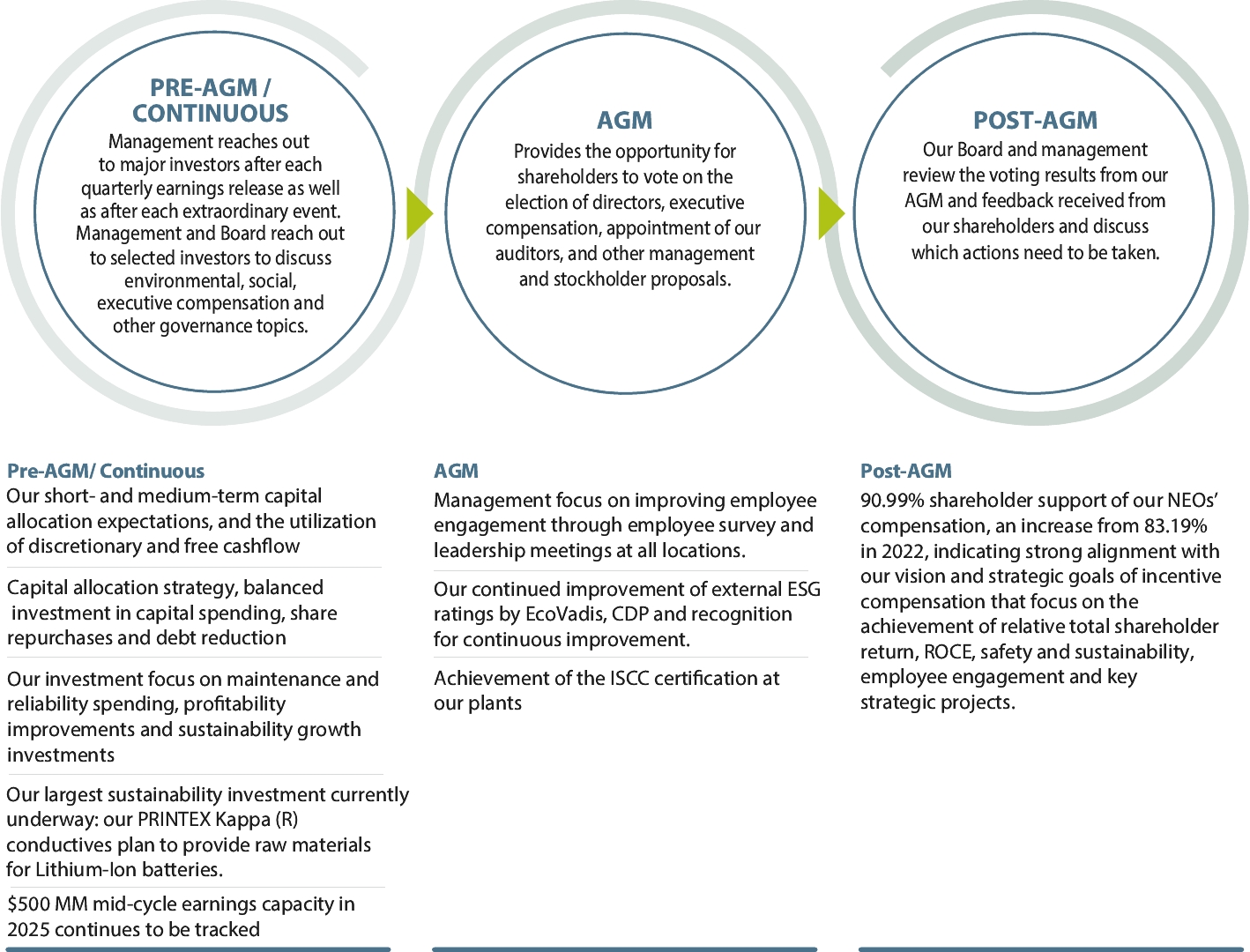 To ensure that directors may appropriately discharge their responsibilities, the Board has adopted a policy that any director (including a management director) who has a significant change in business affiliation or position of principal employment which the Board may deem to be contrary to the best interests of the Company or adversely affecting her or his ability to perform the essential functions and responsibilities of a director, will be expected to tender her or his proposed resignation from the Board to the Nominating, Sustainability and Governance Committee (or, in the event of the chair of the Nominating, Sustainability and Governance Committee’s occupation or association changing, to the Chairman of the Board). The Nominating, Sustainability and Governance Committee shall review the director’s continuation on the Board, and recommend to the Board whether, in light of all the circumstances, the Board should accept such proposed resignation or request that the director continues to serve as one of the Company’s directors.