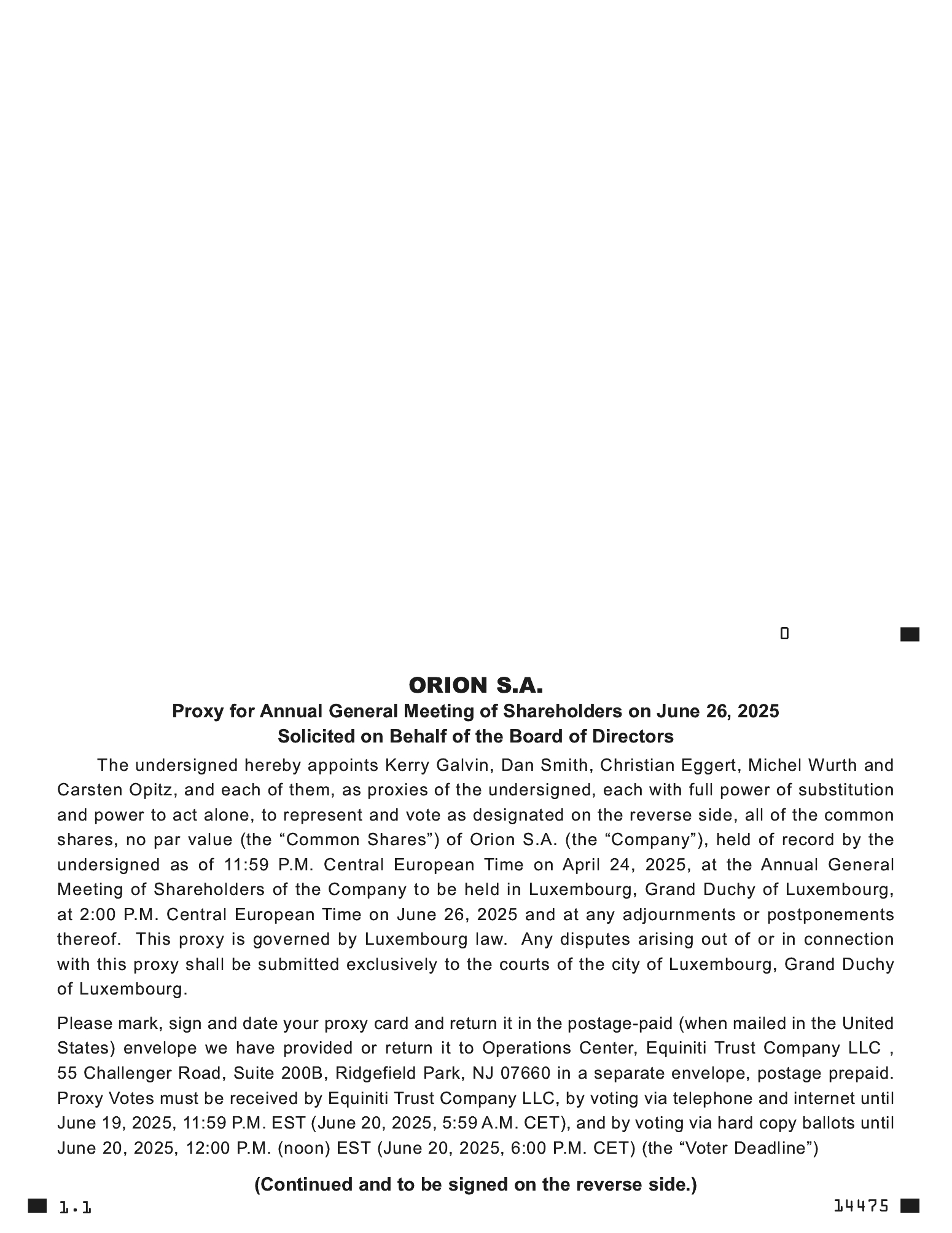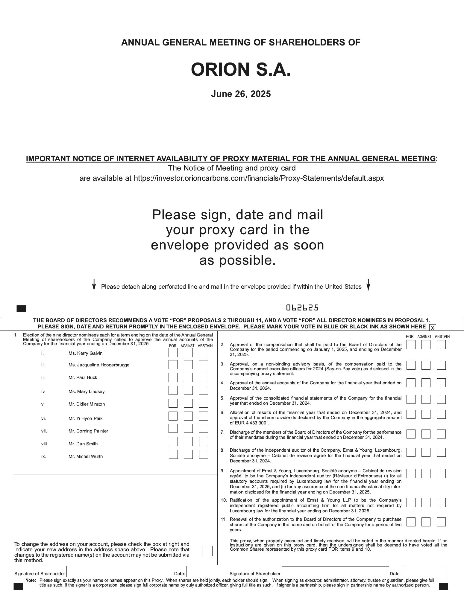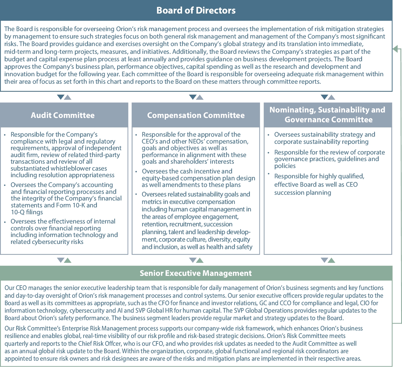 In accordance with SEC Rules, the Audit Committee has established procedures for (i) the receipt, retention and treatment of complaints regarding accounting, internal control, auditing or financial matters (collectively, “Accounting Matters”) and (ii) the confidential, anonymous submission by employees or outside third parties of concerns regarding questionable Accounting Matters. The Audit Committee oversees treatment of complaints and concerns in this area. The Audit Committee can involve an external counsel in any reviews and investigations. The General Counsel reports to the Audit Committee at each quarterly meeting on current compliance matters (if any). Additional information regarding our procedures for anonymous reporting can be found in our Policy on Whistleblower Protection and under the Legal link on our website at https://orioncarbons.com/legal/compliance-guidelines/#reporting violations.