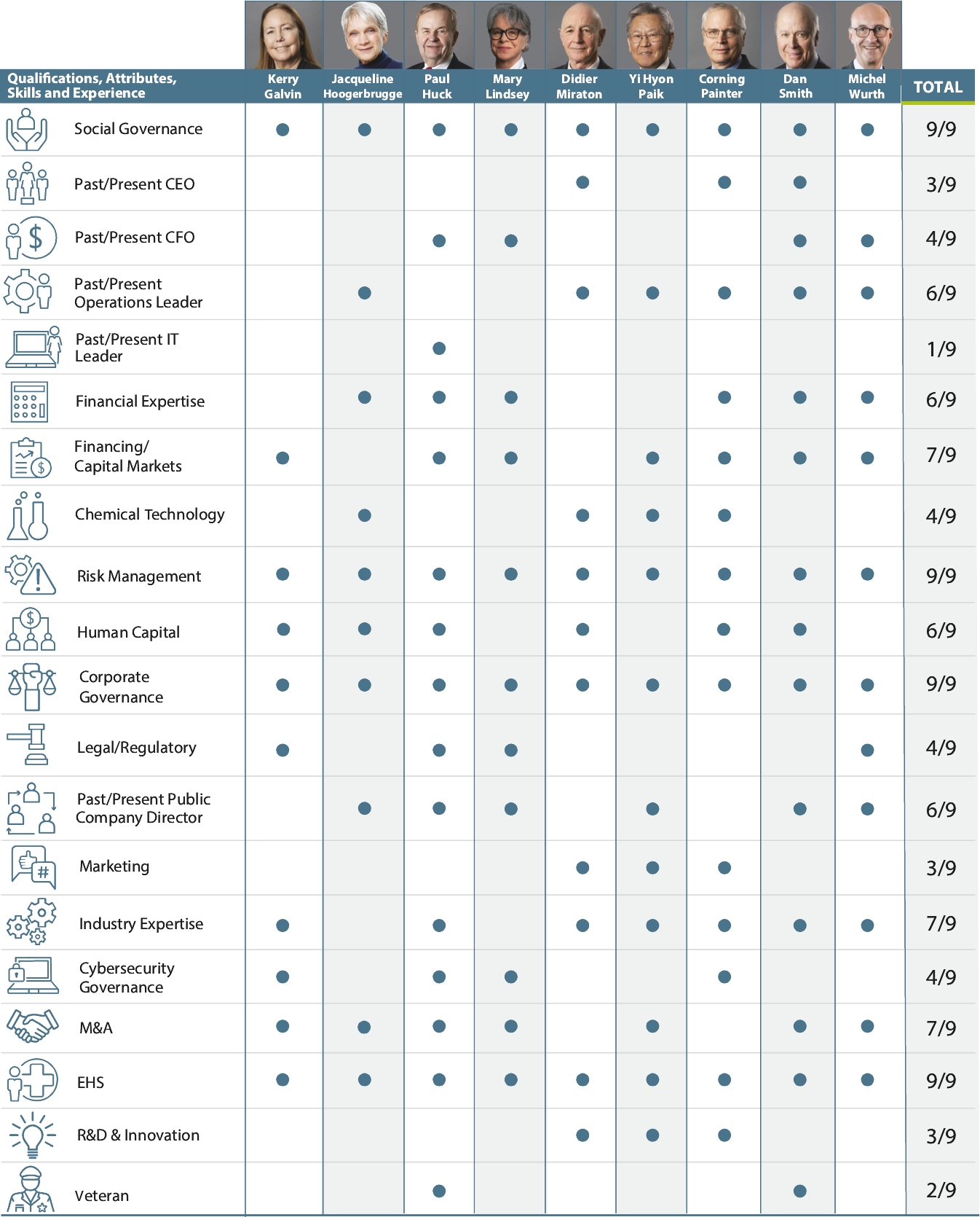 The Board believes this expanded attention to cybersecurity is appropriate. In line therewith, the Company’s CEO as well as Ms. Galvin (Chair of the Nominating, Sustainability and Governance Committee as well as member of the Audit Committee) each have completed a two-day master class in cybersecurity organized by the National Association of Corporate Directors (NACD) in early 2023. Also, our Director, Ms. Lindsey, has earned a CERT Certificate in Cybersecurity Oversight from Carnegie Mellon University. Ms. Lindsey is a member of the Company’s Audit Committee.
