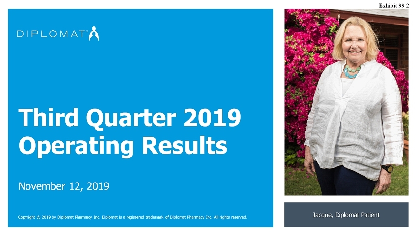 Copyright © 2019 by Diplomat Pharmacy Inc. Diplomat is a registered trademark of Diplomat Pharmacy Inc. All rights reserved. Jacque , Diplomat Patient Third Quarter 2019 Operating Results November 12 , 2019 .2