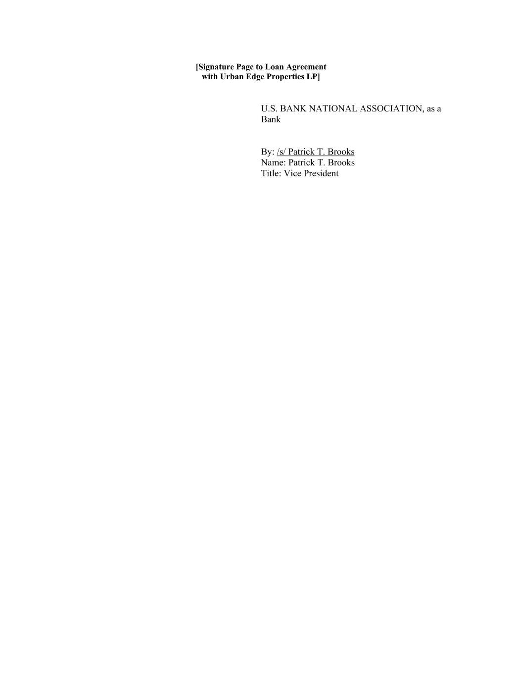 [Signature Page to Loan Agreement with Urban Edge Properties LP] U.S. BANK NATIONAL ASSOCIATION, as a Bank By: /s/ Patrick T. Brooks Name: Patrick T. Brooks Title: Vice President