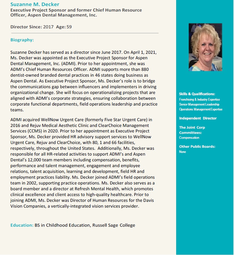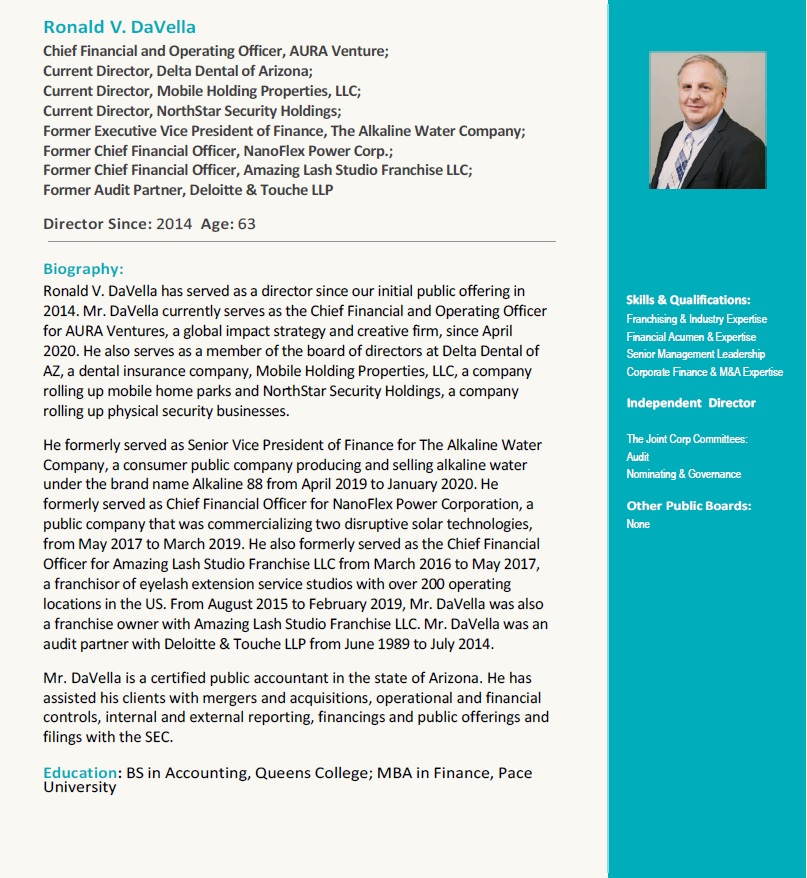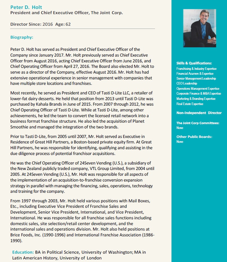 With the Board’s guidance, we are more committed than ever before to our mission and vision. We are more focused on our patients. We are more aligned with franchisees and company employees. And, we are better positioned to deliver operational excellence at great clinics that satisfy patients today and over the years to come. The confidence that you have placed in us is humbling and gratifying as we continue to build The Joint brand and revolutionize access to chiropractic care across this nation.