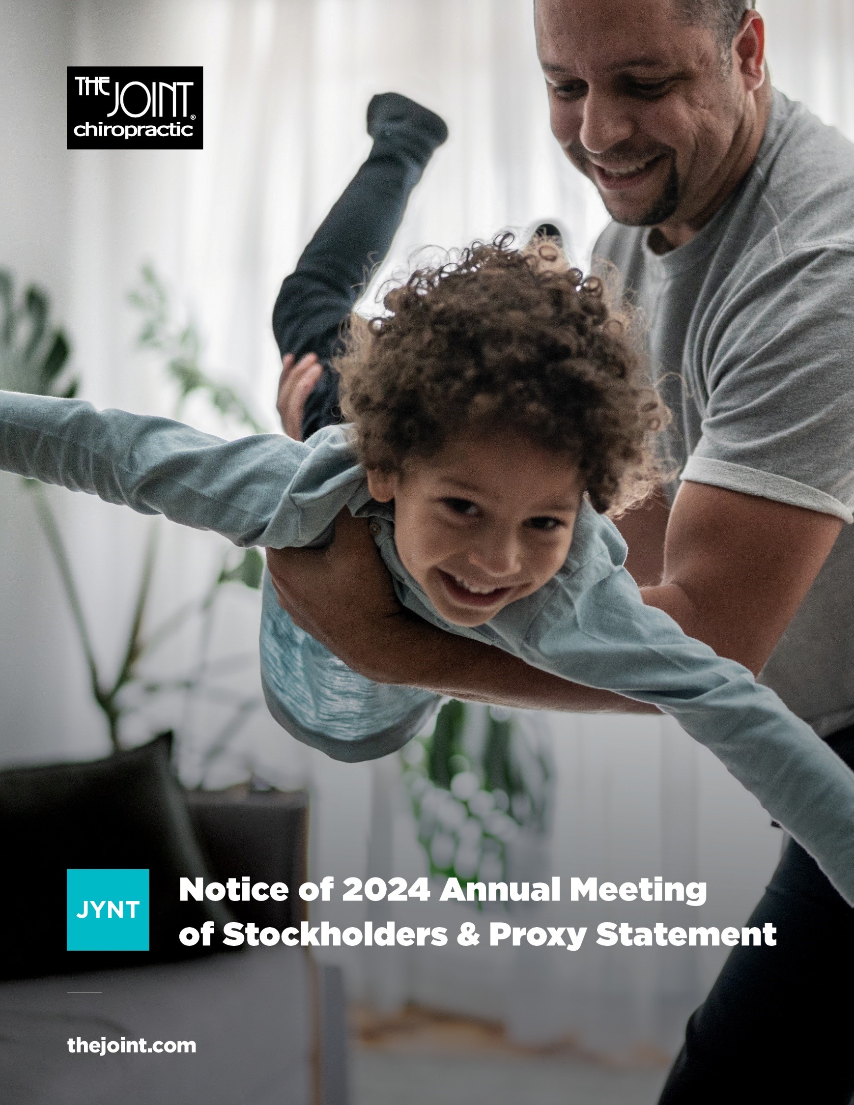 On April 23, 2024, we mailed to our stockholders our 2023 Annual Report and proxy statement, along with the proxy card. The proxy card includes instructions on how to vote online, by phone, and by mail. Your vote is important regardless of the number of shares you own. Whether or not you plan to attend the Annual Meeting, we encourage you to consider the matters presented in the proxy statement and vote as soon as possible. We hope that you will be able to join us on May 22nd. Thank you for your ownership and support of The Joint Corp.