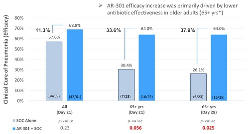 Two of our mAbs in advanced clinical development are being developed for treatment of HAP and VAP in intensive care units or ICUs. Our initial clinical indication for AR-301 is for adjunctive therapeutic treatment with standard of care, or SOC, antibiotics for HAP and VAP. AR-320 is being developed as a pre-emptive treatment of mortality and morbidity associated with HAP and VAP. Current SOC antibiotics used to treat HAP and VAP typically involve a combination of several broad-spectrum antibiotics that are prescribed empirically at the start of treatment. The specific empirical antibiotic regimens that are prescribed vary widely among physicians, and generally result in modest clinical benefits due to a number of reasons, which can include an infection by an antibiotic resistant strain, immune deficiency, or potential mismatch of the antibiotics regimen to the etiologic agent. Recently, rapid diagnostic tests have been introduced that allow the identification of infection-causing agents within hours. These increasingly common rapid tests allow physicians to prescribe a more appropriate antibiotics regimen, and eventually more targeted anti-infectives such as AR-301 and AR-320 earlier in the course of infection. This evidenced-based treatment approach is designed to remove issues associated with empirical broad-spectrum antibiotics such as inappropriate antibiotic selection and promotion of antibiotic resistance. In contrast to the lack of differentiation among SOC antibiotics, mAbs are highly differentiated from SOC antibiotics in mechanism of action, pharmacokinetic and pharmacodynamic profile, and thus are well suited to complement antibiotics when used together. As an adjunctive treatment, AR-301 has the potential to improve the effectiveness of SOC antibiotics and cover antibiotic resistant S. aureus strains, while not competing directly with antibiotics. To emphasize the benefits of our product candidates as an adjunctive therapy, we design clinical trials based on superiority endpoints.