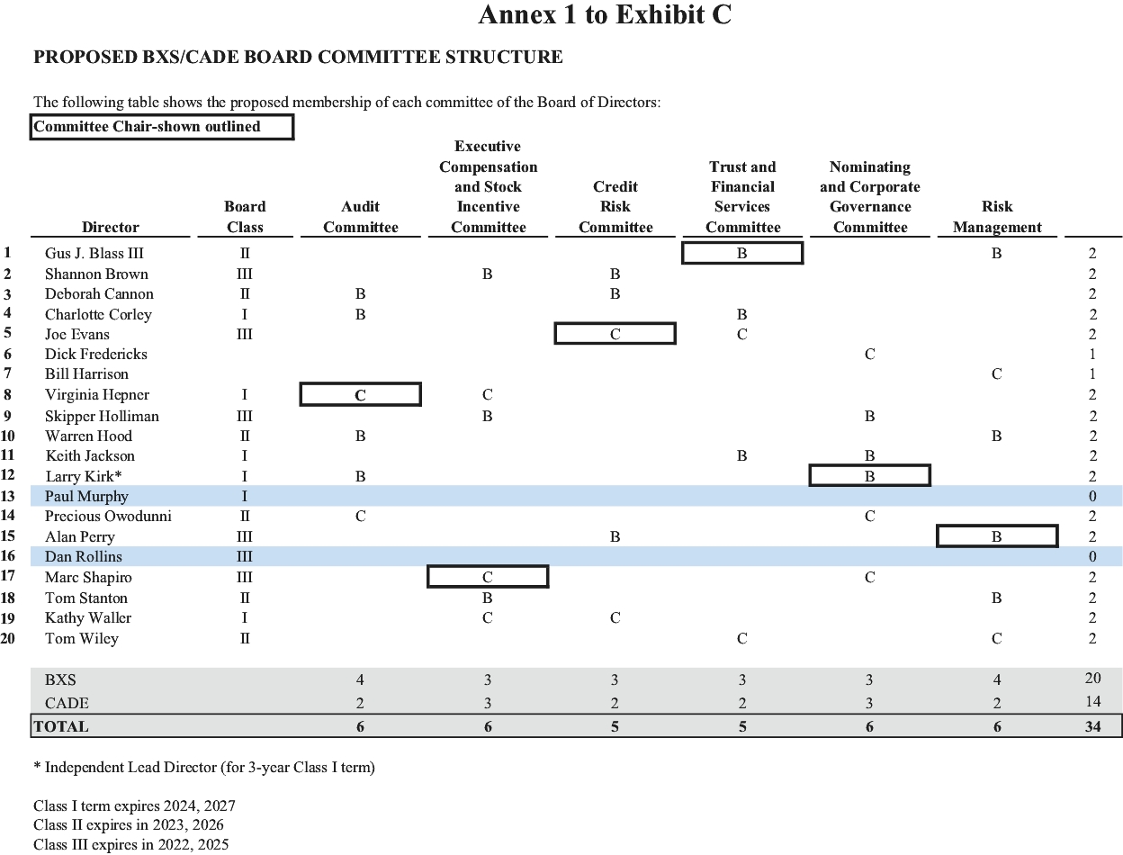 On March 5, 2021, BancorpSouth sent an executed written response letter (the “March 5 Response”) to Cadence, which response letter reflected the terms of the March 4 Response in all material respects and requested countersignature by Cadence to enter into an exclusive negotiating period of 40 days to complete confirmatory due diligence and to negotiate and execute definitive agreements in respect of the proposed transaction.