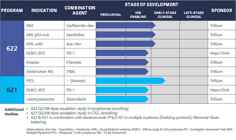 We have also entered into agreements allowing us to manufacture TTI-622 and TTI-621 using Catalent's proprietary GPEx® expression system. The consideration includes payments at the time we successfully reach a series of development and sales milestones. We may also enter into licenses in the future to access additional third-party intellectual property.
