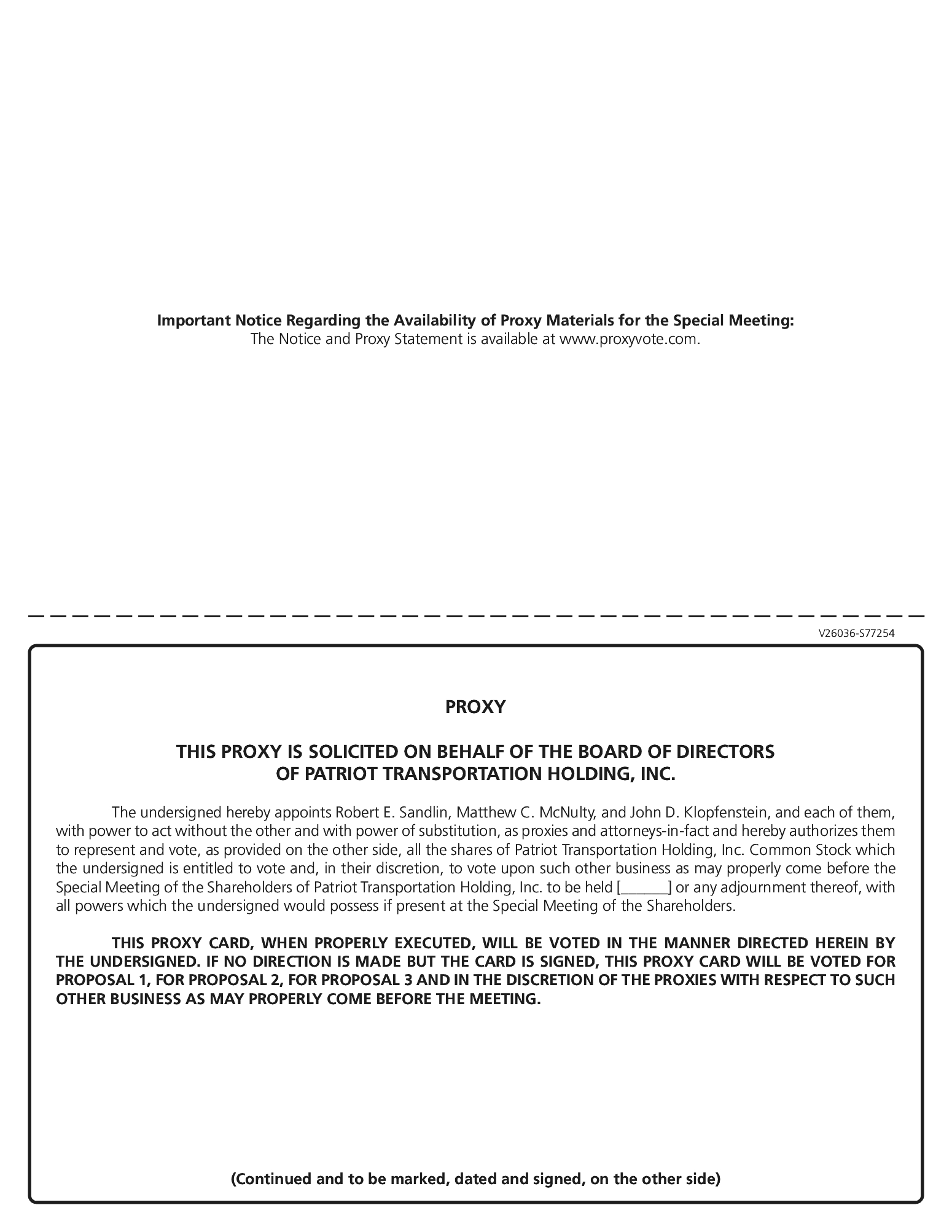 A special meeting of shareholders of Patriot Transportation Holding, Inc., a Florida corporation (the “Company”), will be held virtually via live webcast on [ ], 2023, at [ ] Eastern Time at [ ] (including any postponements or adjournments thereof, the “special meeting”), for the following purposes:
