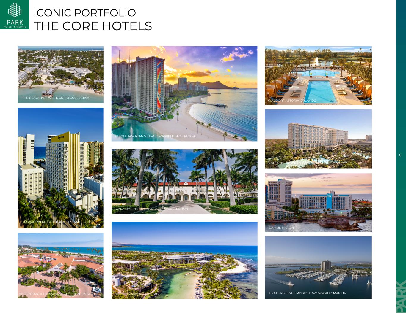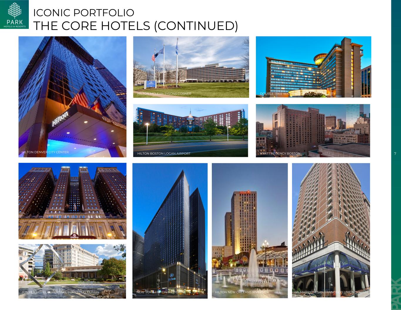 6 THE CORE HOTELS ICONIC PORTFOLIO WALDORF ASTORIA ORLANDO CASA MARINA KEY WEST, CURIO COLLECTION HILTON WAIKOLOA VILLAGE ROYAL PALM SOUTH BEACH MIAMI HILTON HAWAIIAN VILLAGE WAIKIKI BEACH RESORT HILTON SANTA BARBARA BEACHFRONT RESORT CASA MARINA KEY WEST, CURIO COLLECTION HYATT REGENCY MISSION BAY SPA AND MARINAHILTON WAIKOLOA VILLAGE SIGNIA BY HILTON ORLANDO BONNET CREEK THE REACH KEY WEST, CURIO COLLECTION CARIBE HILTON