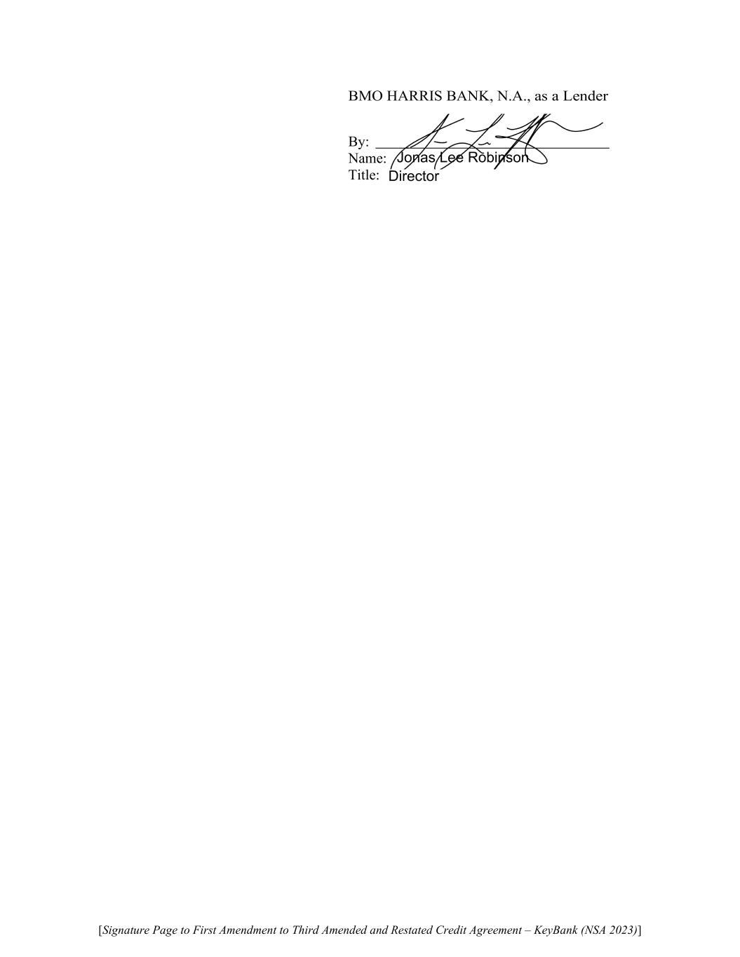 [Signature Page to First Amendment to Third Amended and Restated Credit Agreement – KeyBank (NSA 2023)] BMO HARRIS BANK, N.A., as a Lender By: Name: Title: Jonas Lee Robinson Director