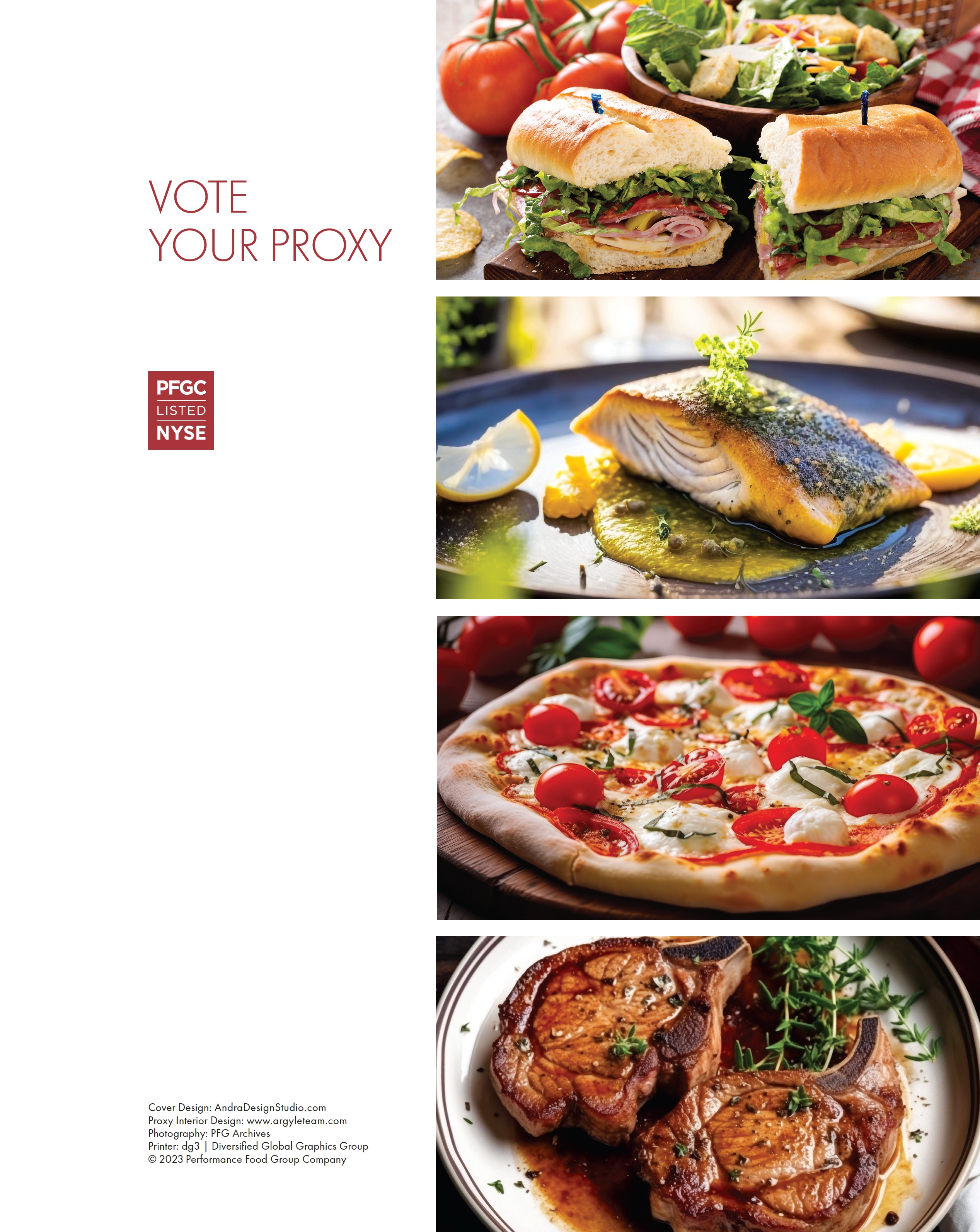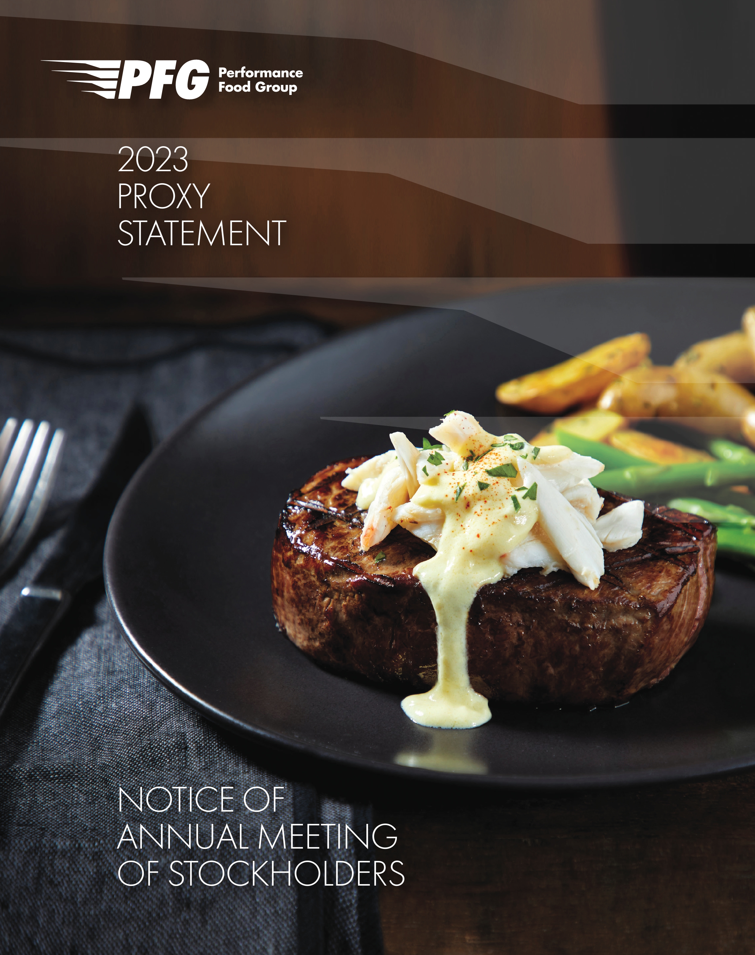 | IMPORTANT NOTICE REGARDING THE AVAILABILITY OF PROXY MATERIALS FOR THE ANNUAL MEETING OF STOCKHOLDERS TO BE HELD ON THURSDAY, NOVEMBER 30, 2023: This Proxy Statement and our Annual Report are available free of charge on the Annual Report and Proxy tab in the Financial Information section in the Investors section of our website (https://investors.pfgc.com/financials/annual-reports/default.aspx; https://investors.pfgc.com/ financials/proxy/default.aspx). |