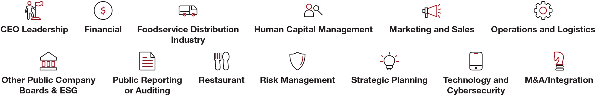 George L. Holm Chairman and Chief Executive Officer of Performance Food Group Other Current Public Company Boards: None |