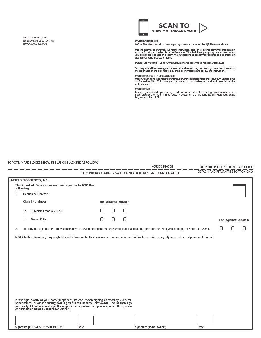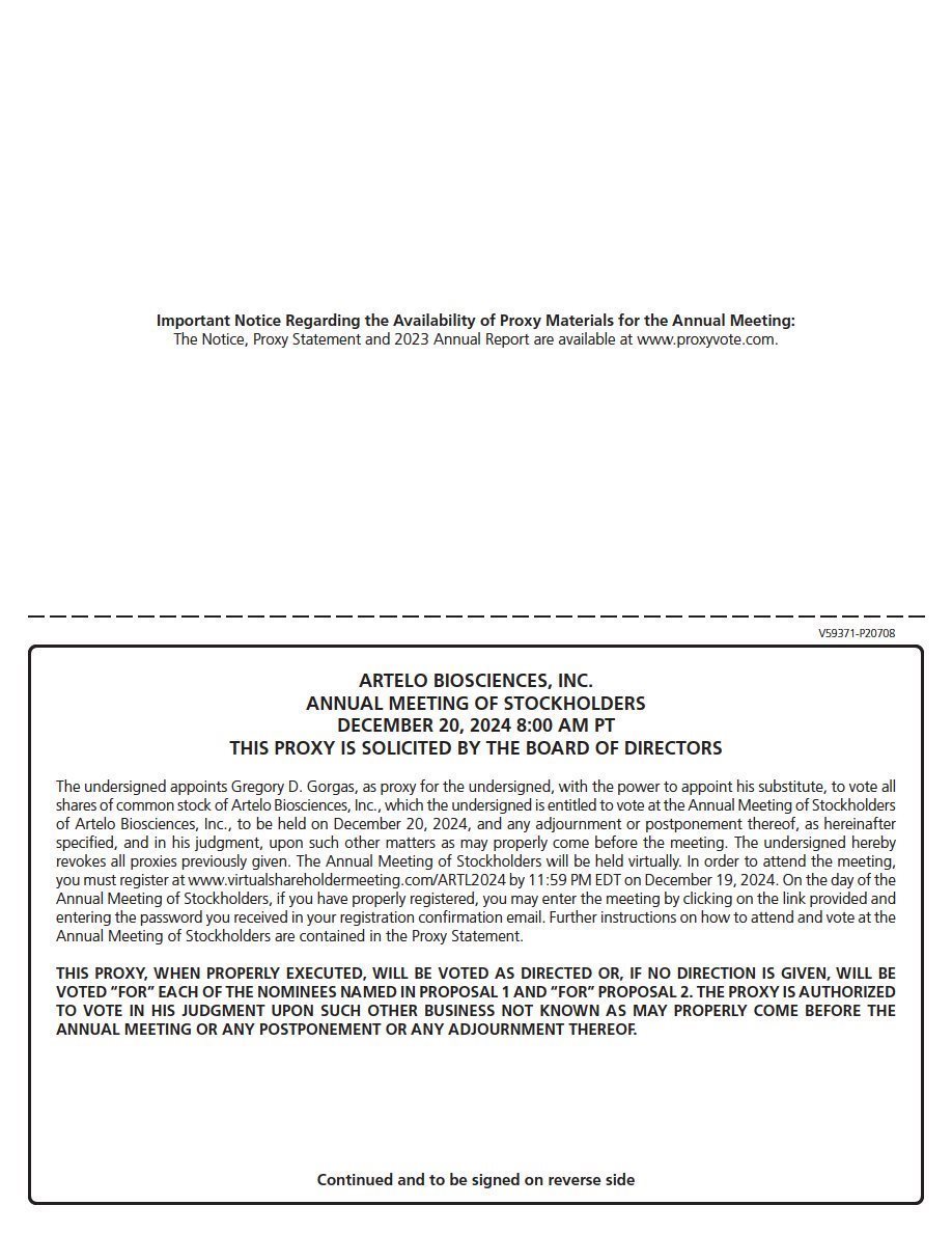 | ARTELO BIOSCIENCES, INC. |