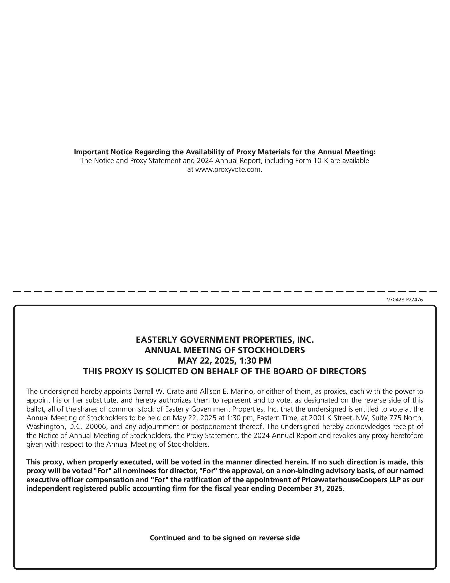 If you authorize your proxy to vote your shares electronically via the Internet or by telephone, or, if you properly marked, signed, dated and returned the proxy card mailed to you, the shares that the proxy represents will be voted in the manner specified on the proxy. If you properly signed and returned a proxy card but no specification is made, your shares will be voted “for” the election of the director nominees named in this proxy statement, “for” the approval, on a non-binding advisory basis, of the compensation of our named executive officers, as described in this proxy statement, and “for” the ratification of the appointment of PricewaterhouseCoopers LLP as our independent registered public accounting firm for the fiscal year ending December 31, 2025. If your shares are held in street name and your broker or nominee does not receive instructions from you about how