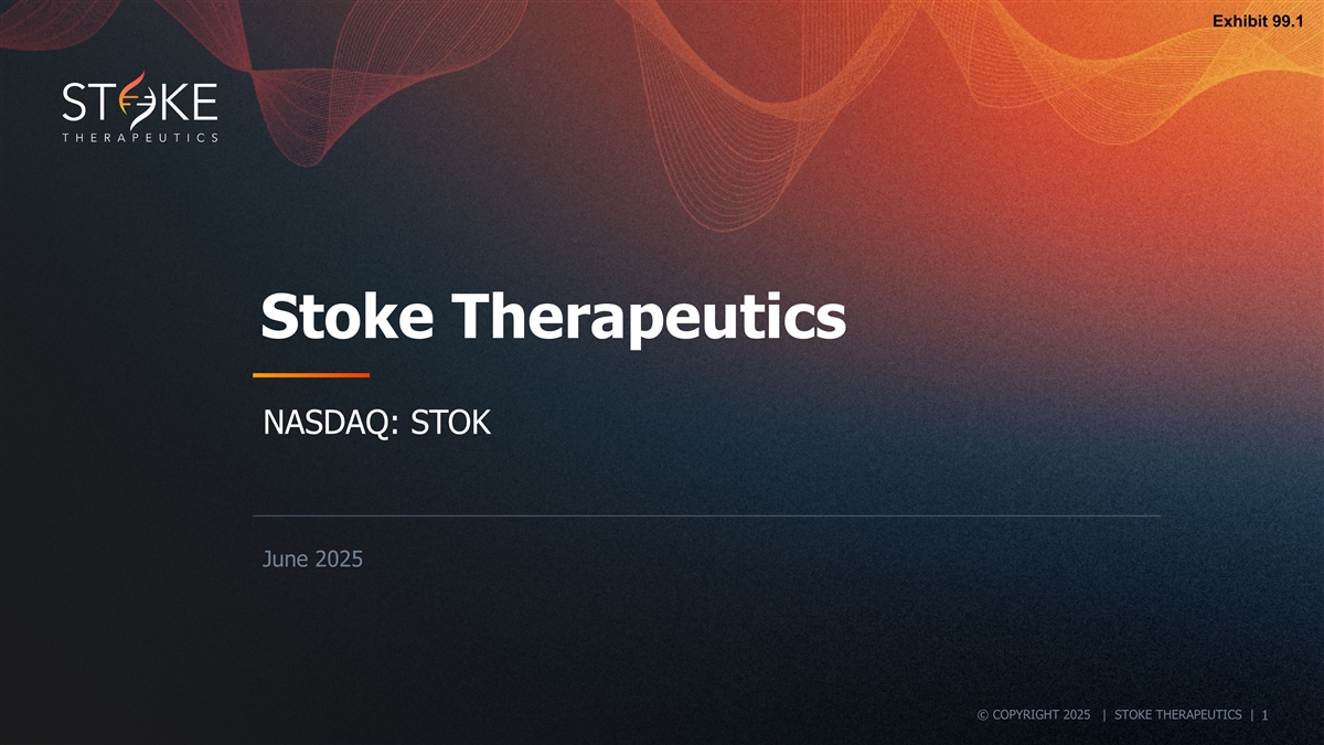 Stoke Therapeutics NASDAQ: STOK June 2025 © © COP COPY YR RI IG GH HT T 2 20 02 25 5 | | S ST TOKE OKE T TH HER ERA AP PEU EUT TI ICS CS | | 1