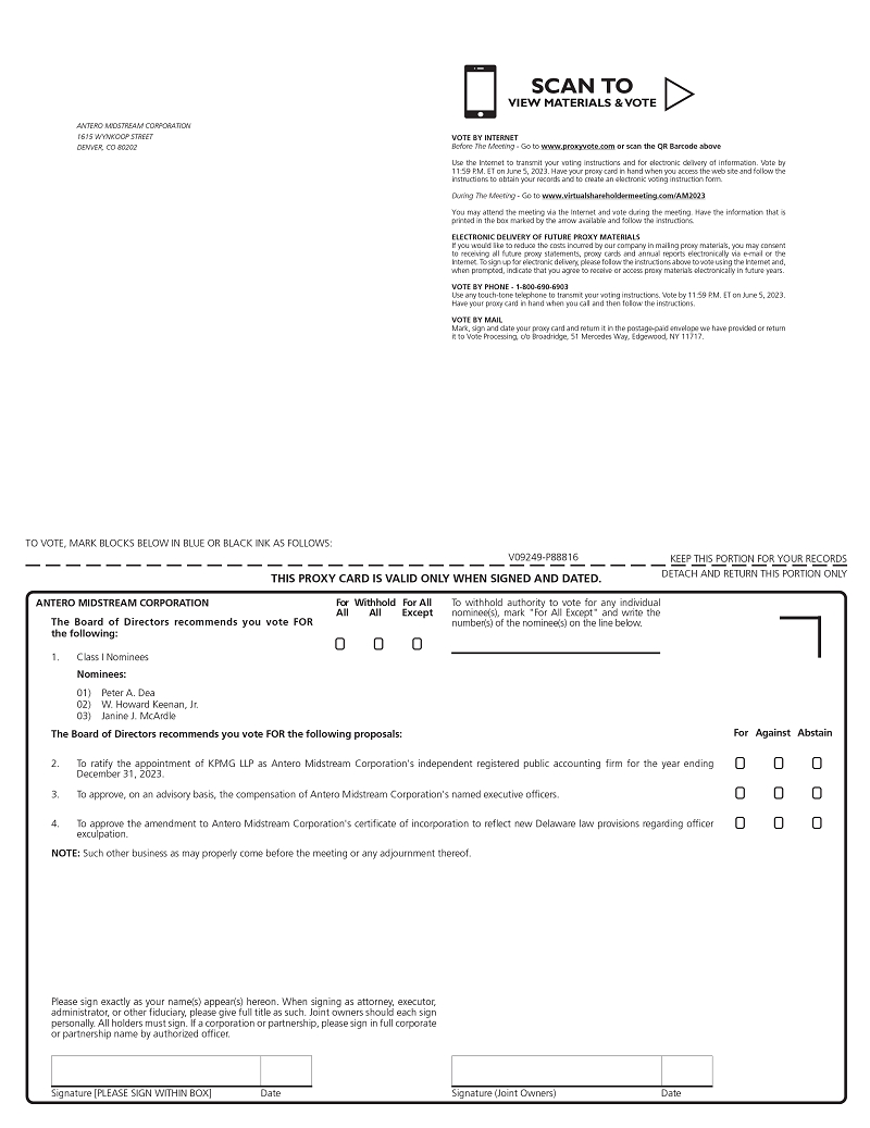 | 1. | Elect the three Class I members of Antero Midstream Corporation’s Board of Directors (the “Board”) named in this Proxy Statement to serve until Antero Midstream’s 2026 Annual Meeting of Stockholders, |