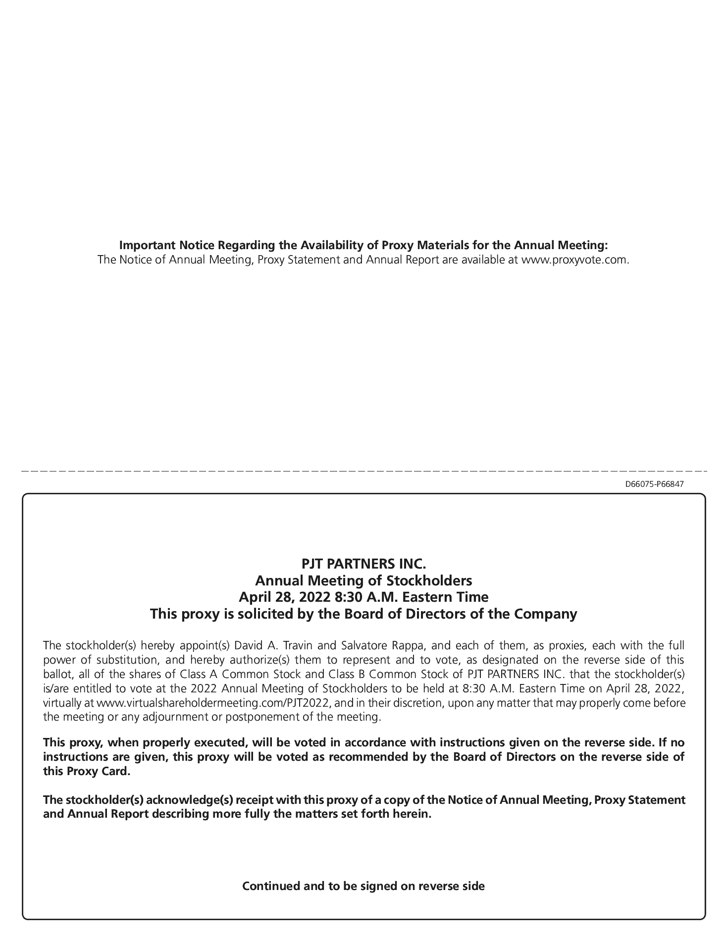 The Performance LTIPs satisfy the time-vesting requirement over a five-year period, with 20% vesting per annum, with limited and customary vesting exceptions and forfeiture provisions provided in the applicable award agreement and the PJT Partners Inc. 2015 Omnibus Incentive Plan, such as change in control, death, disability and termination without cause.