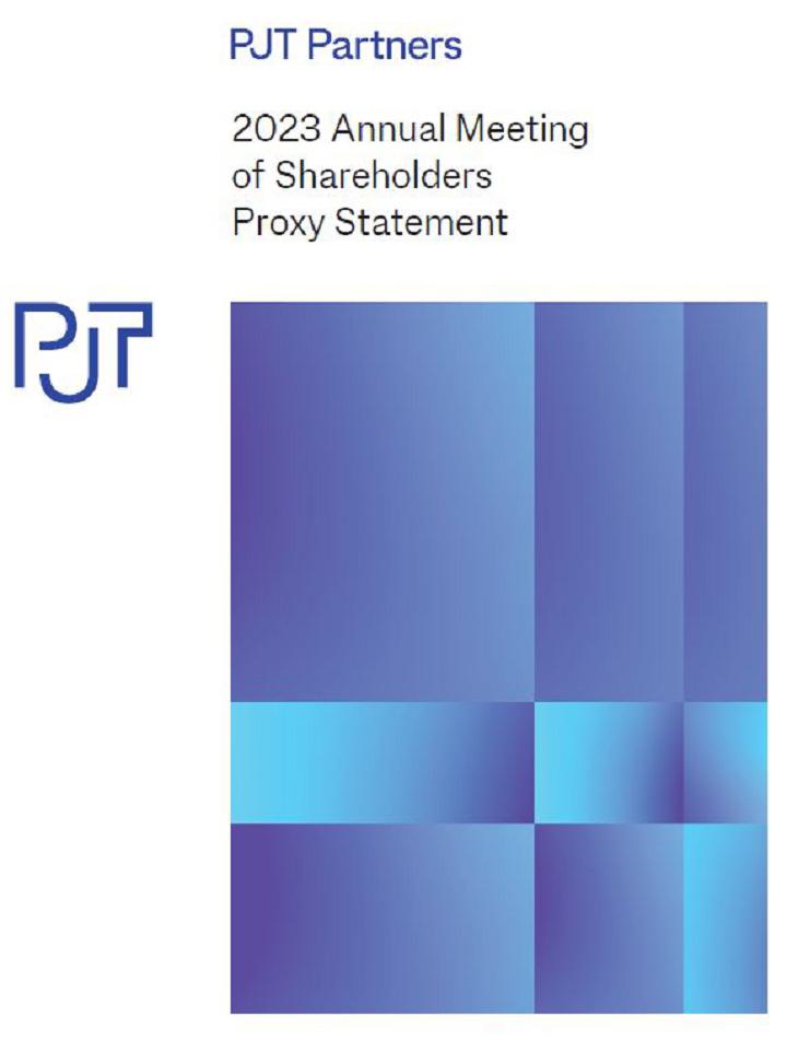 This summary highlights information from PJT Partners Inc.’s Proxy Statement for the 2023 Annual Meeting of Shareholders. You should read this entire Proxy Statement carefully before voting. Please refer to the Glossary of Terms in Appendix A for definitions of some of the terms used in this Proxy Statement.(1) Your vote is important. For more information on voting and participating in the Annual Meeting, see, “Participation in Our Annual Meeting” on page 88.