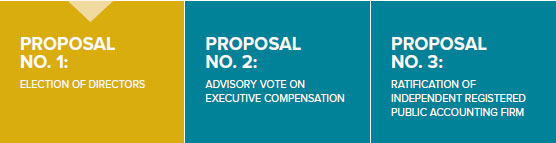 You will be asked to consider three proposals at the annual meeting: