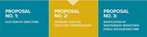 | • | Proposal No. 2 asks you to approve a non-binding advisory resolution on the compensation paid to our named executive officers. |
