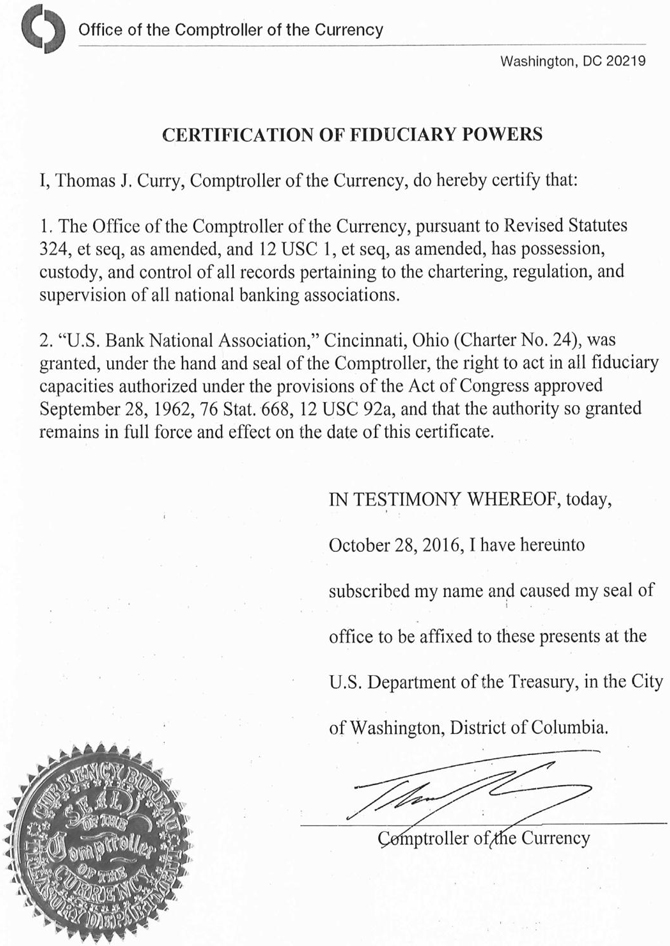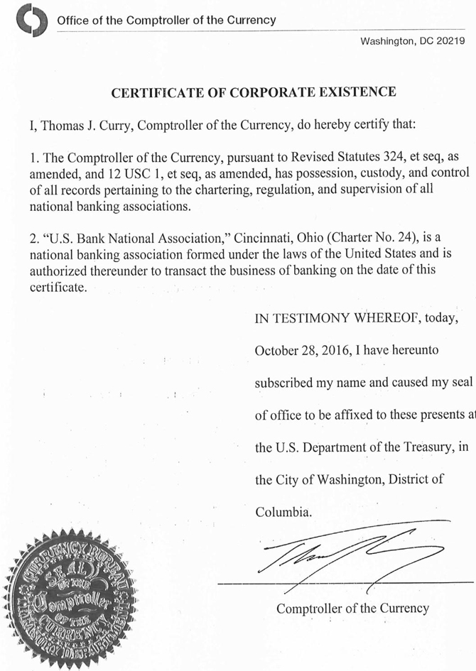 | 2. | A copy of the certificate of authority of the Trustee to commence business, attached as Exhibit 2. |