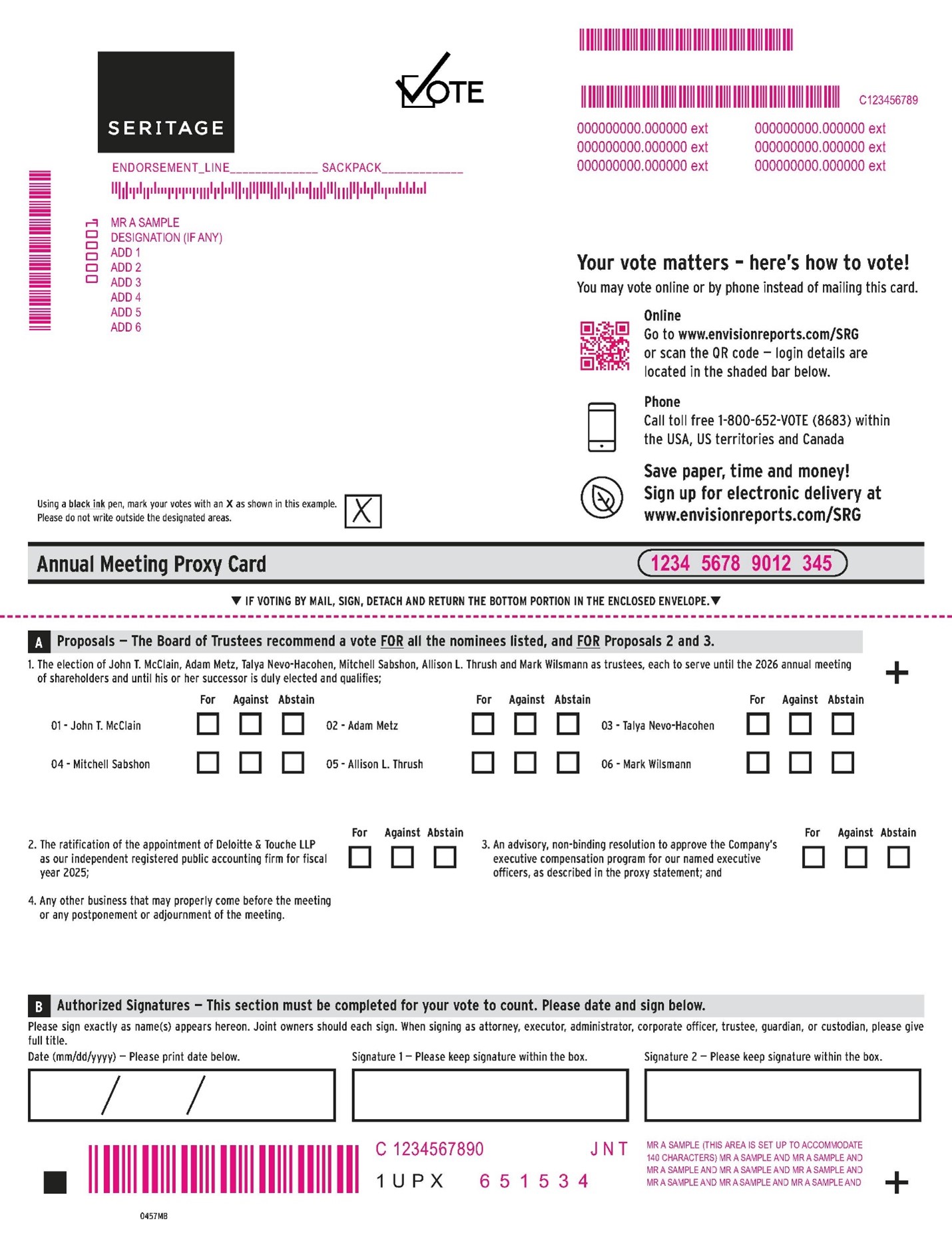 We invite you to attend the 2025 annual meeting of shareholders (the “Annual Meeting”) of Seritage Growth Properties, a Maryland real estate investment trust (“Seritage,” “the Company,” “our company,” “we,” “our” or “us”), to consider and vote upon: