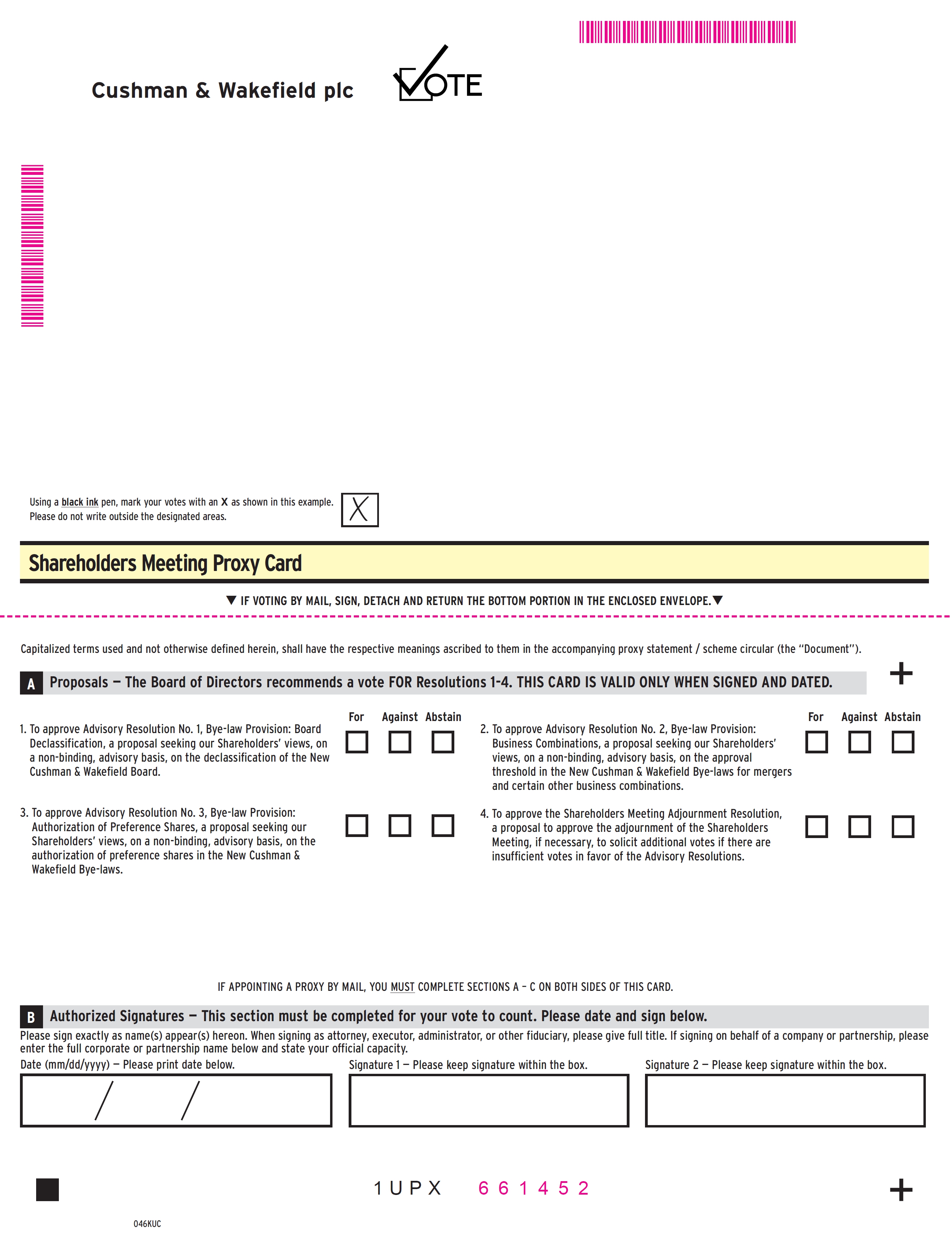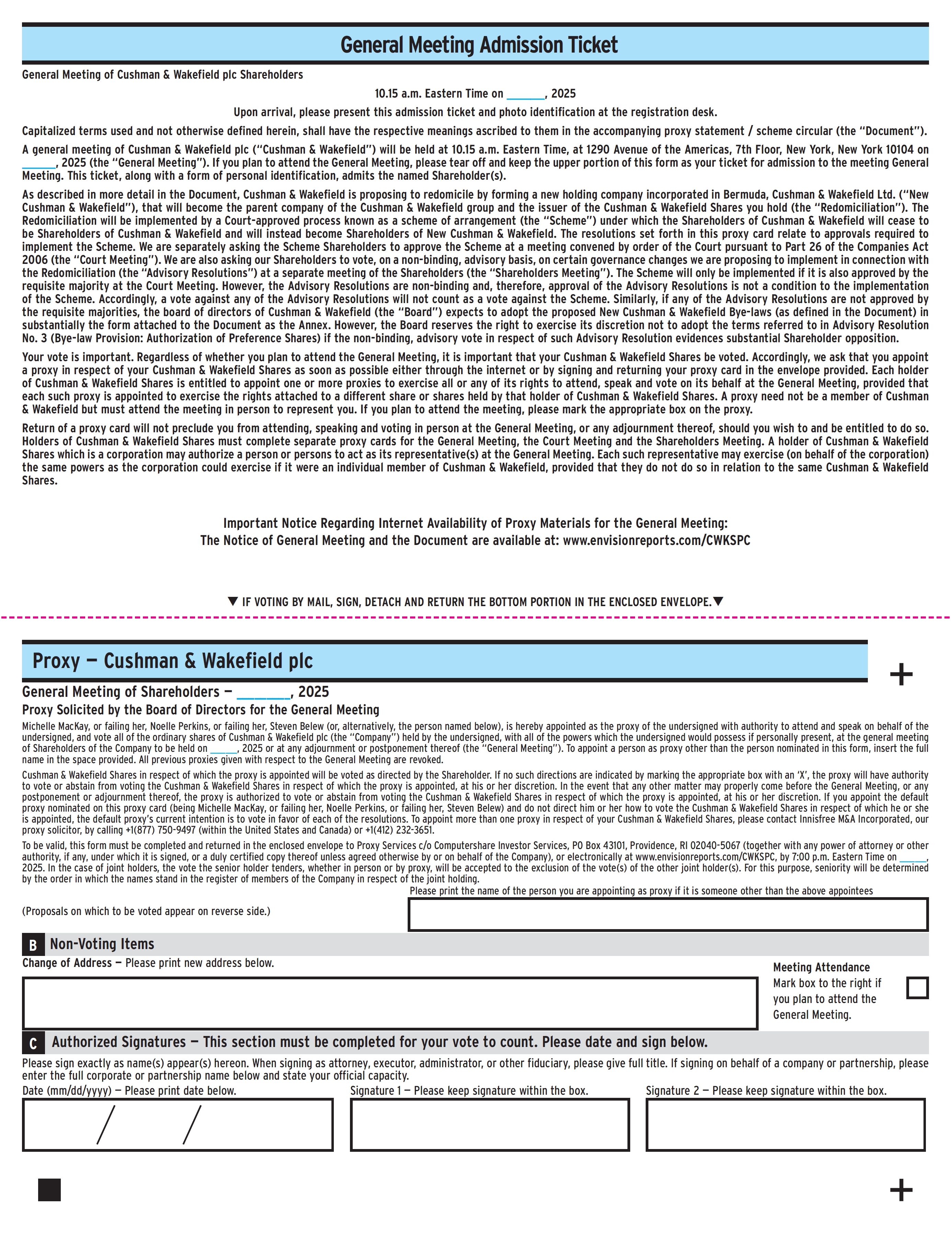 As Shareholders of Cushman & Wakefield, you are entitled to vote on the proposed transaction, as outlined in this Document.