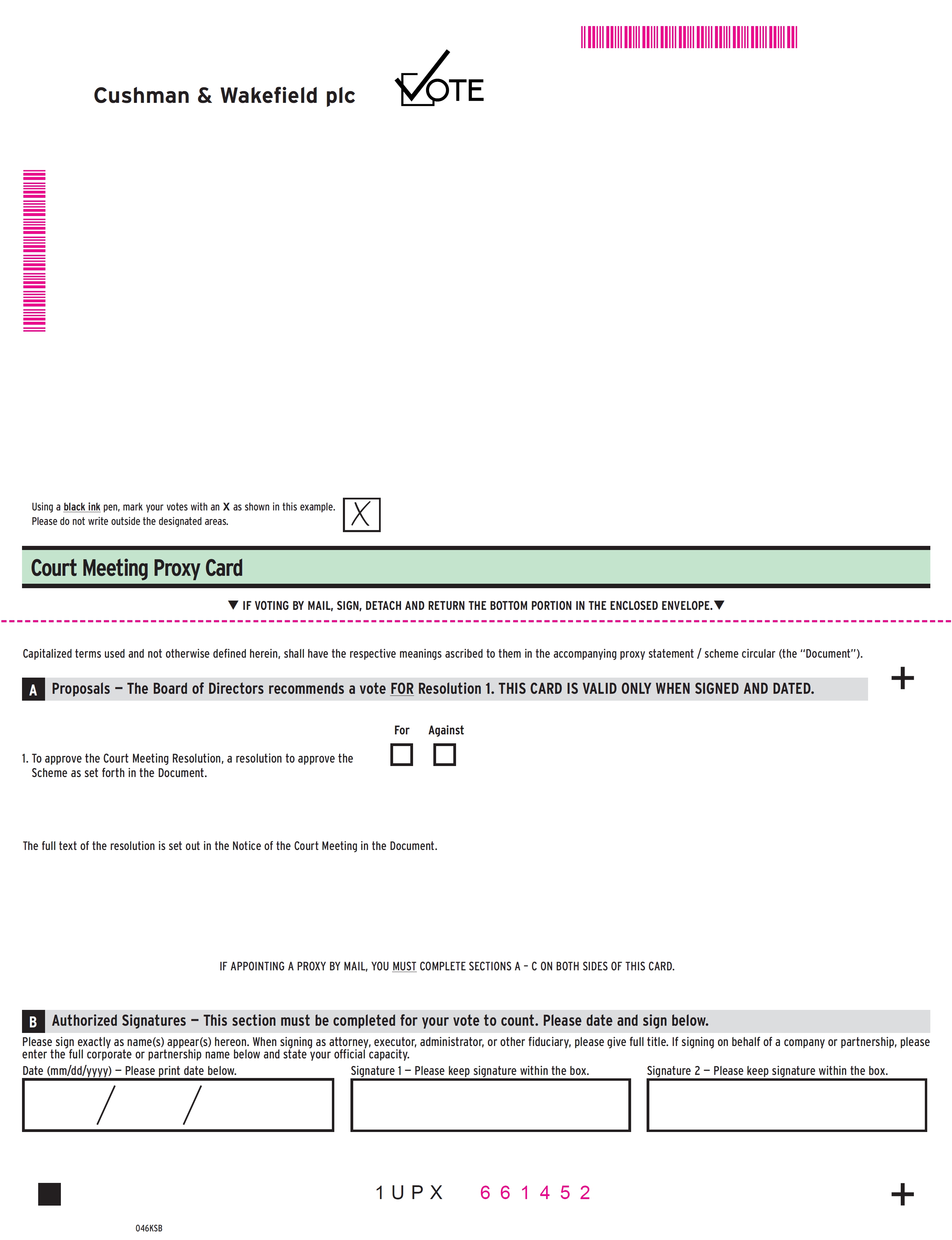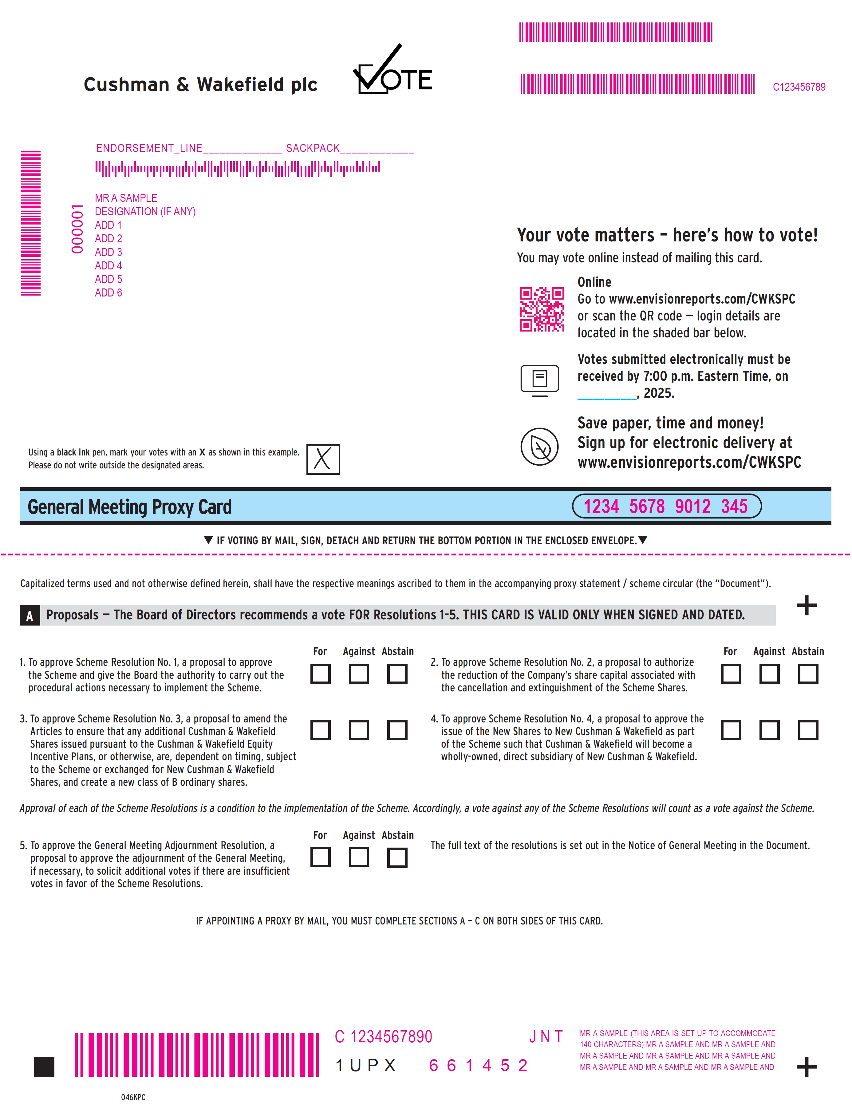 If your Cushman & Wakefield Shares are registered directly in your name on the Company’s register of members maintained by the Transfer Agent, you are considered, with respect to those Cushman & Wakefield Shares, the member and Shareholder of record (and, for purposes of this Document, a Cushman & Wakefield Shareholder and, for purposes of the Scheme, a Scheme Shareholder). If you are a Shareholder of record, please follow the instructions below on how to vote: