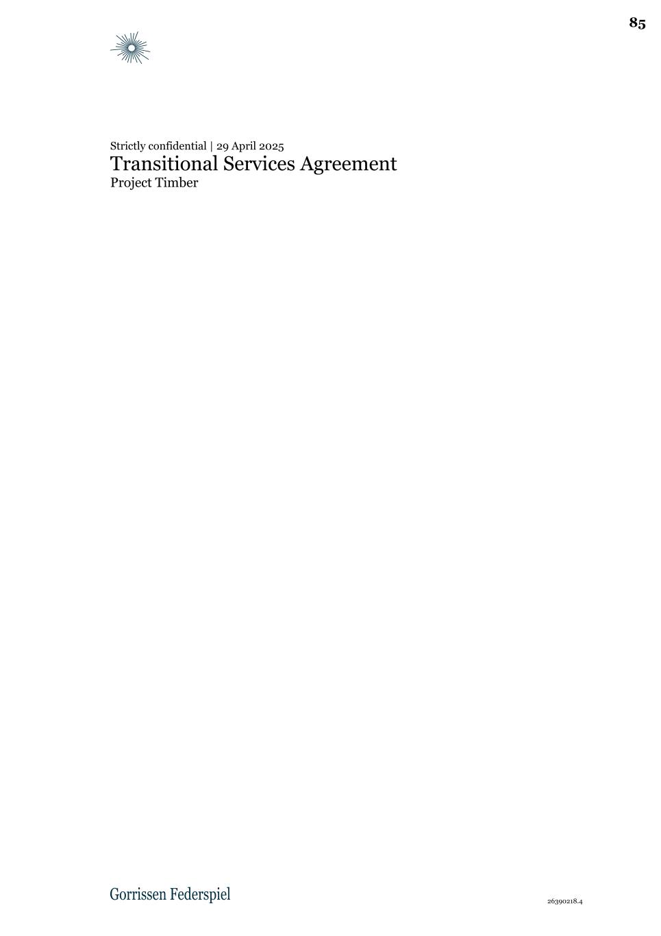 26390218.4 Strictly confidential | 29 April 2025 Transitional Services Agreement Project Timber 85