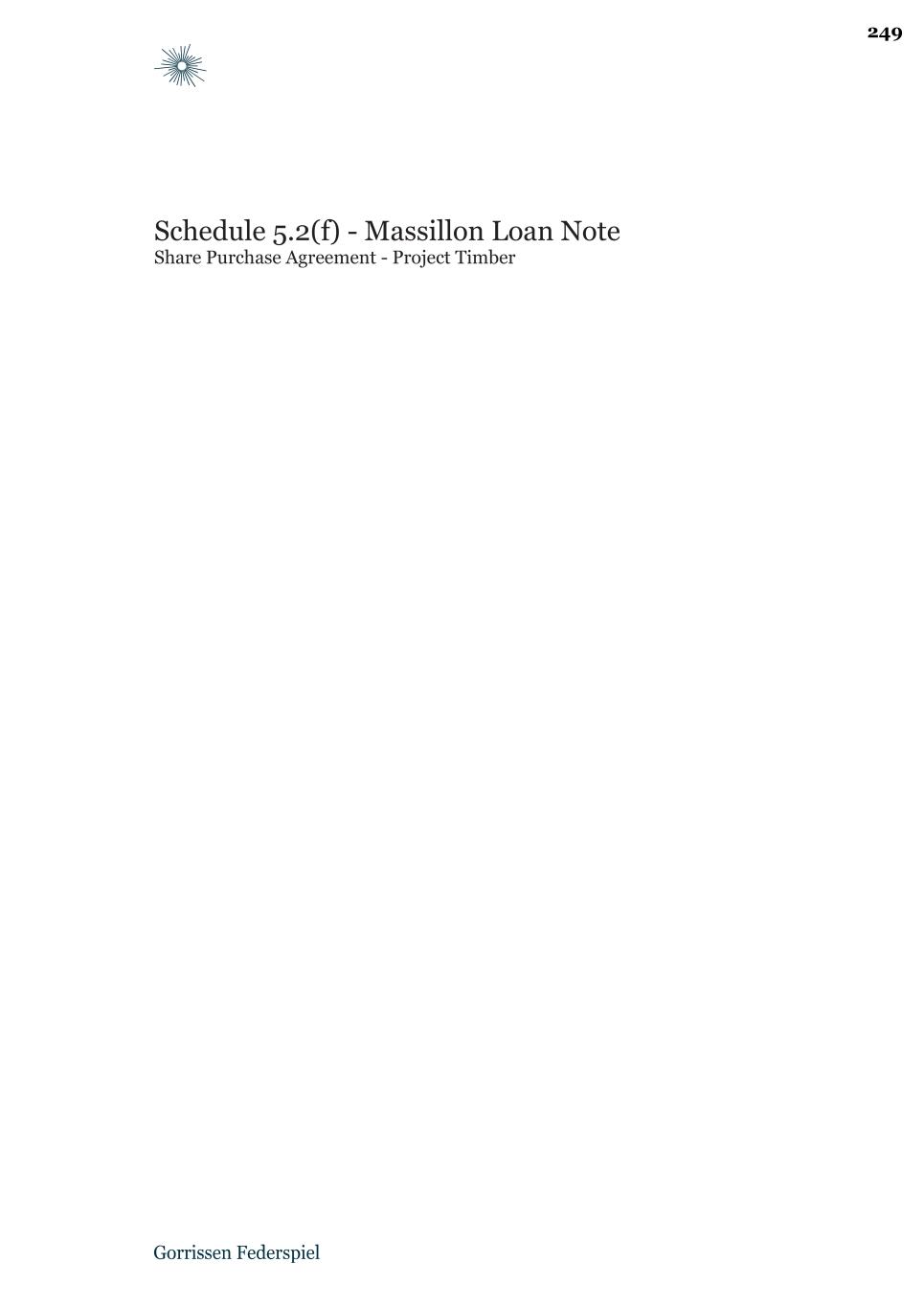 Schedule 5.2(f) - Massillon Loan Note Share Purchase Agreement - Project Timber 249