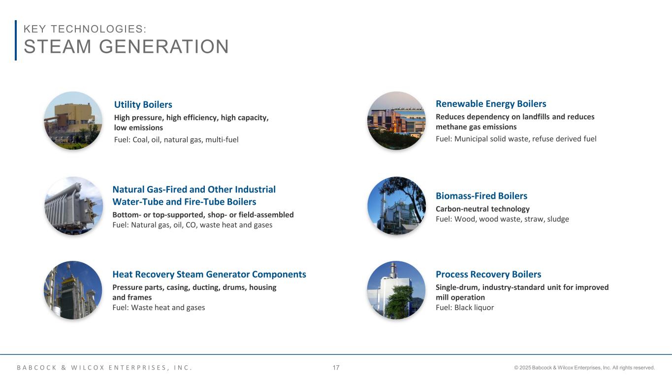 B A B C O C K & W I L C O X E N T E R P R I S E S , I N C . © 2025 Babcock & Wilcox Enterprises, Inc. All rights reserved.16 KEY TECHNOLOGIES AND CAPABILITIES