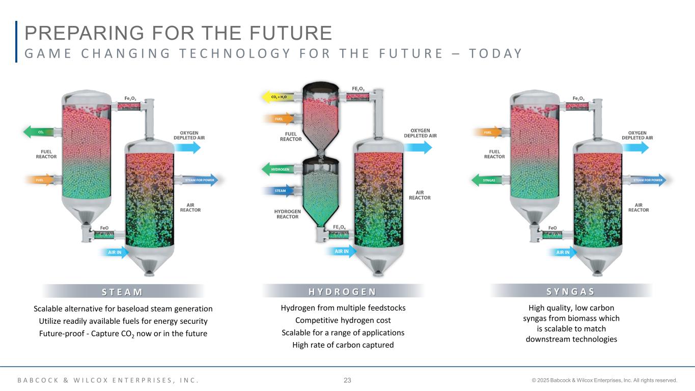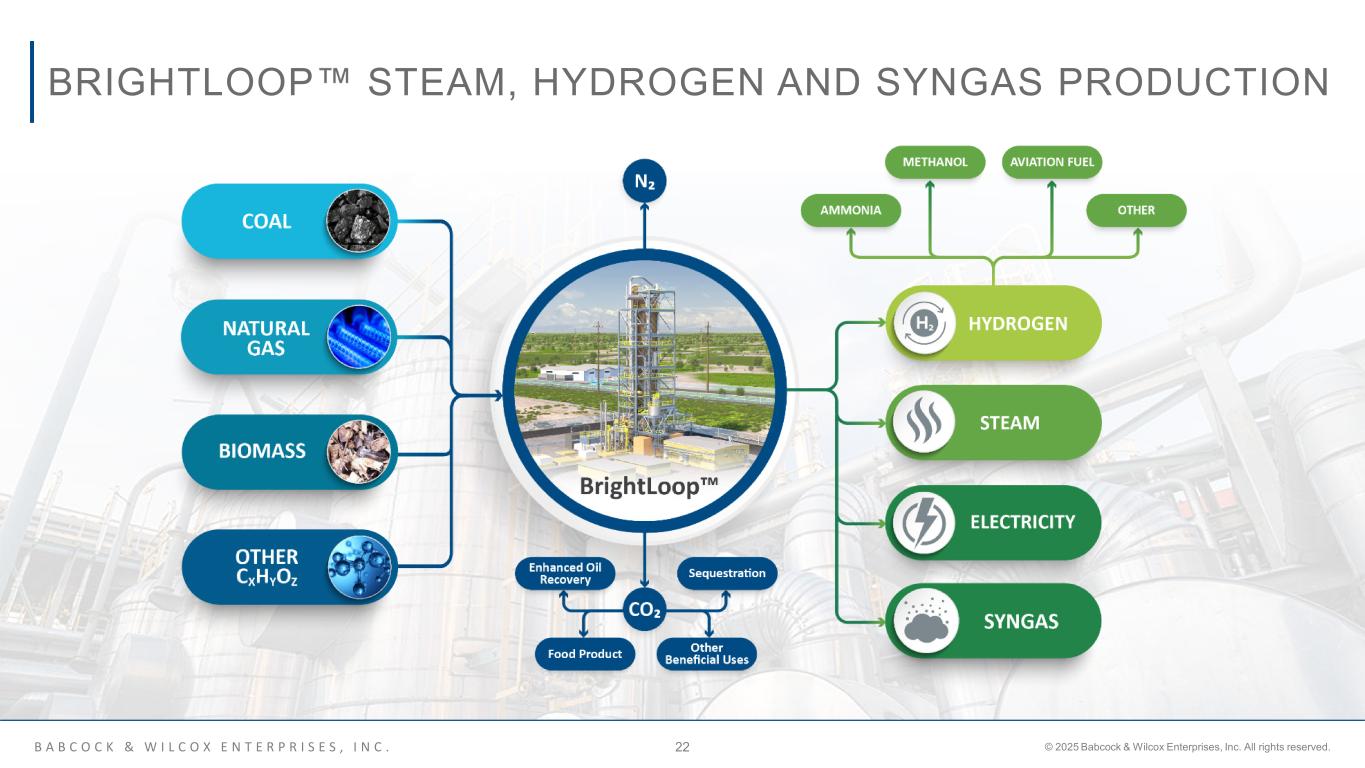 B A B C O C K & W I L C O X E N T E R P R I S E S , I N C . © 2025 Babcock & Wilcox Enterprises, Inc. All rights reserved.22 BRIGHTLOOP STEAM, HYDROGEN AND SYNGAS PRODUCTION