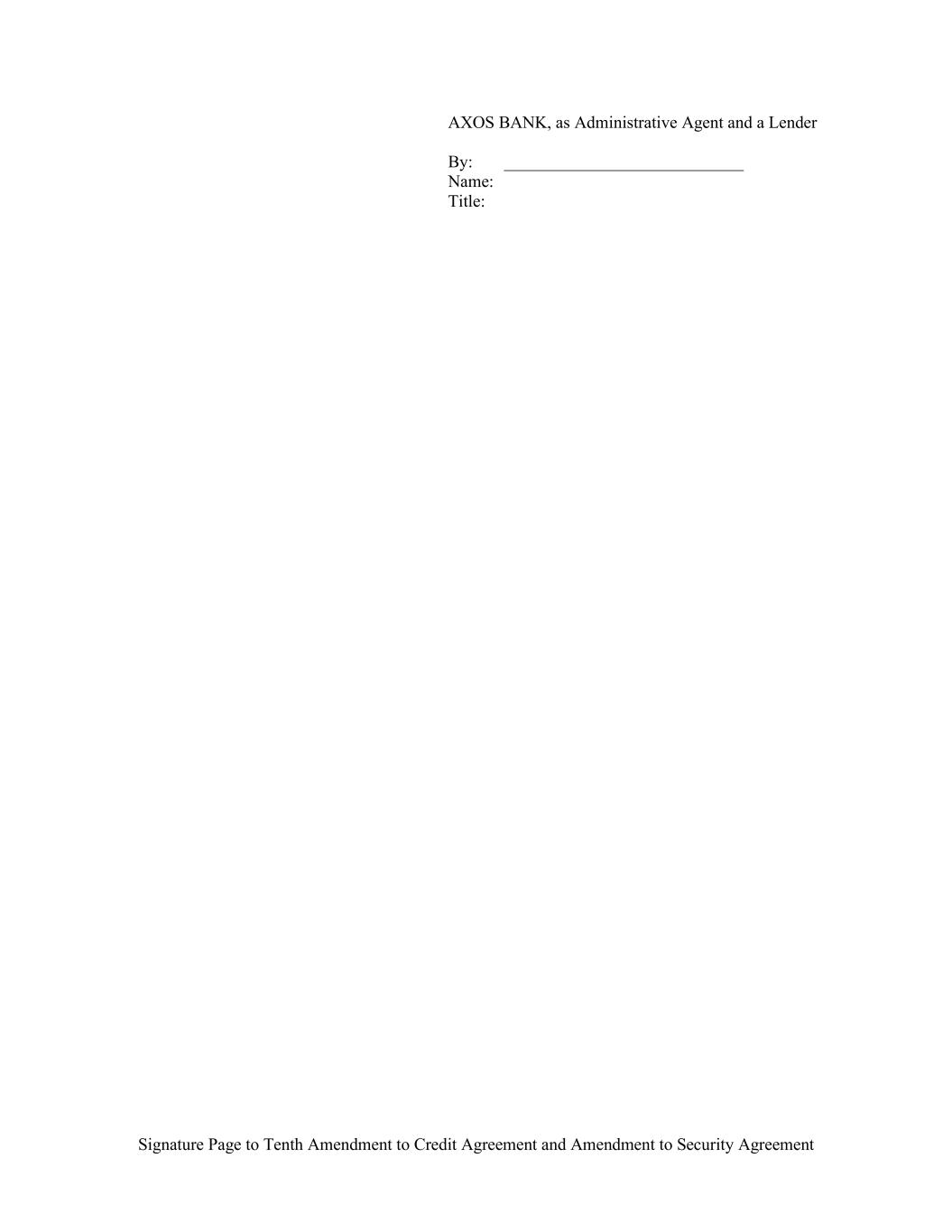 Signature Page to Tenth Amendment to Credit Agreement and Amendment to Security Agreement AXOS BANK, as Administrative Agent and a Lender By: ____________________________ Name: Title: