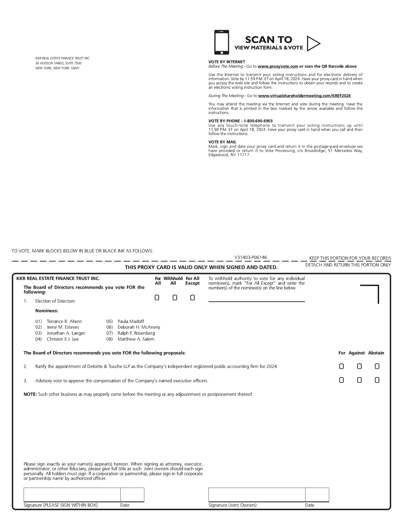 In April 2018, we entered into a term loan financing arrangement (“Term Loan Facility”) with a third party lender under which KKR Capital Markets (“KCM”) will serve as arranger. In consideration for structuring and sourcing the Term Loan Facility, KCM will receive from KREF fees equal to 0.75% of the committed loan advances. As of the date of this proxy statement, there was a $1 billion maximum loan commitment under the Term Loan Facility. Since the beginning of the fiscal year ended December 31, 2022, we have not paid KCM any fees in connection with the Term Loan Facility.