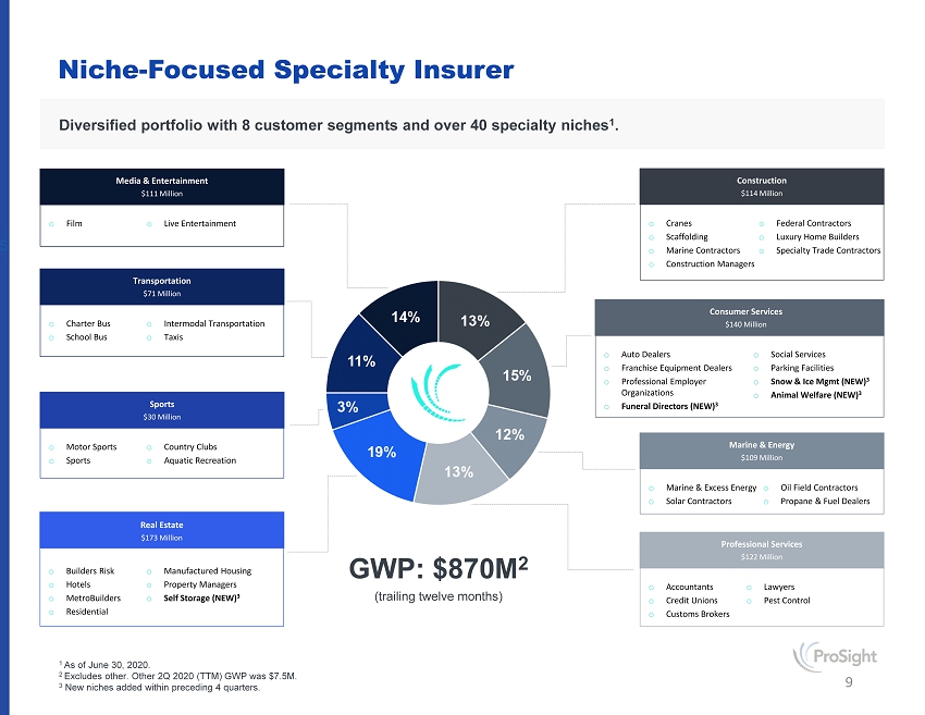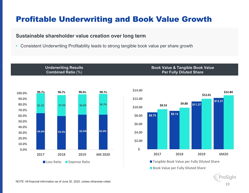 $73.4 $101.9 $118.0 $94.4 $107.1 $133.7 $79.3 $83.1 $94.7 $114.4 $119.9 $125.0 $112.6 $110.5 $119.3 $132.0 $132.7 $167.6 $22.2 $23.6 $30.0 $ 85.1 $ 92.2 $ 112.1 2017 2018 2019 Transportation Sports Real Estate Professional Services Media and Entertainment Marine and Energy Consumer Services Construction $713.4M 1 $771.0M 1 15 Focus on Profitable Growth 1 Existing customer segment only; actual GWP are $836M for 2017, $895M for 2018, and $968m for 2019; $491m for 2Q19 and $400m f or 2Q20. 2 CAGR for actual GWP from 2017 to 2019 is 7.6%. Contraction for actual GWP 6M2019 to 6M2020 is (18.5%). 3 Excluding Transportation and Media and Entertainment customer segments (niches heavily impacted by COVID - 19), GWP growth YOY was 7.7%. Future growth within any niche or customer segment considers profitability first . ProSight employs a rigorous process to identify if/when growth is justified and react quickly once a decision is made. Growth in Existing Niches New Customer Segments New Niches in Existing Customer Segments WE GROW IN THREE WAYS: Existing Customer Segments Only $900.4M 1 $55.8 $52.2 $65.4 $71.3 $45.5 $59.6 $62.1 $47.9 $58.7 $61.6 $75.3 $80.5 $14.7 $14.3 $ 49.7 $ 9.1 6M19 6M20 $427.2M 1 $396.5M 1