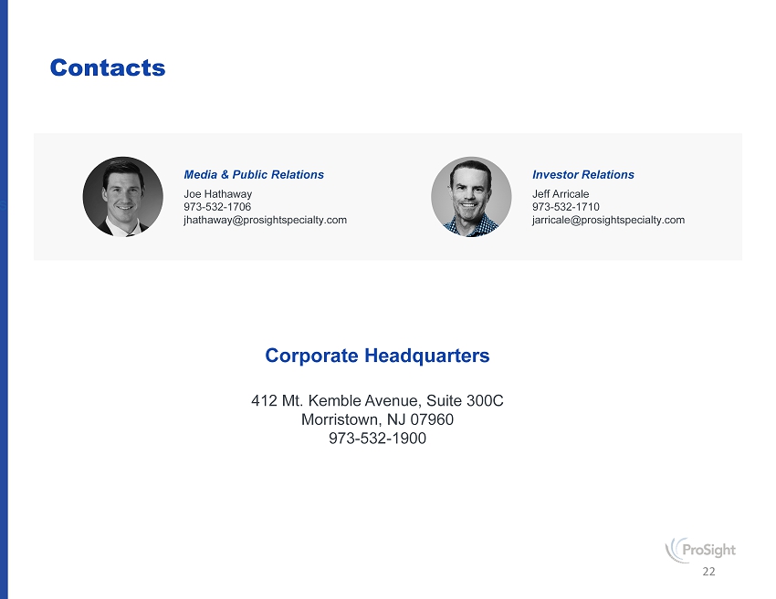 22 Contacts Corporate Headquarters 412 Mt. Kemble Avenue, Suite 300C Morristown, NJ 07960 973 - 532 - 1900 Investor Relations Jeff Arricale 973 - 532 - 1710 jarricale@prosightspecialty.com Media & Public Relations Joe Hathaway 973 - 532 - 1706 jhathaway@prosightspecialty.com